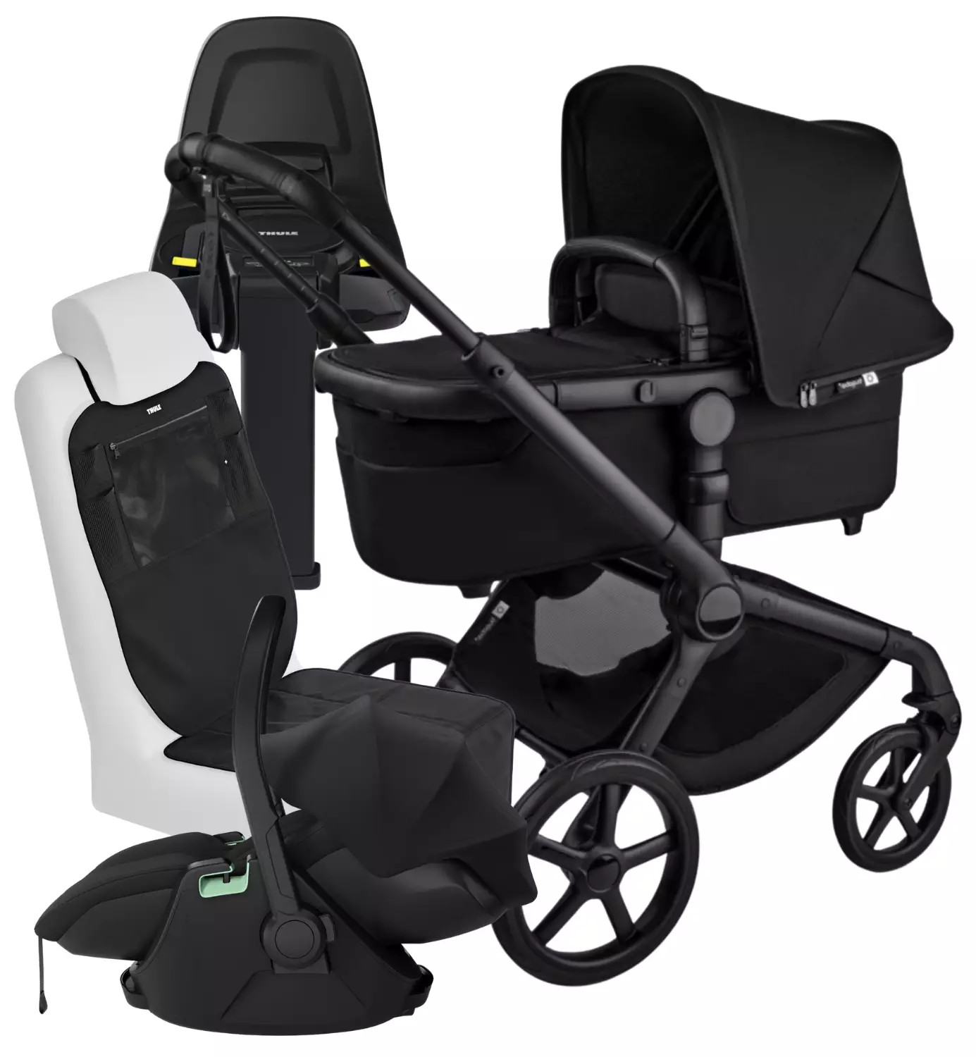 Bugaboo Fox 5 Renew + Thule Maple + Alfi-jalusta = turvallinen, laadukas ja pitkäikäinen kokonaisuus, joka tekee vauva-arjesta huomattavasti sujuvampaa. Mukana myös adapterit kaukalon kiinnittämiseksi rattaan runkoon sekä kätevä penkinsuoja autoon.