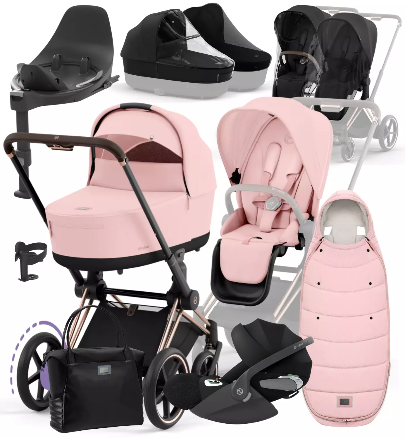Cybex ePriam Lastenvaunujen Starttipaketti All-in-One, Peach Pink