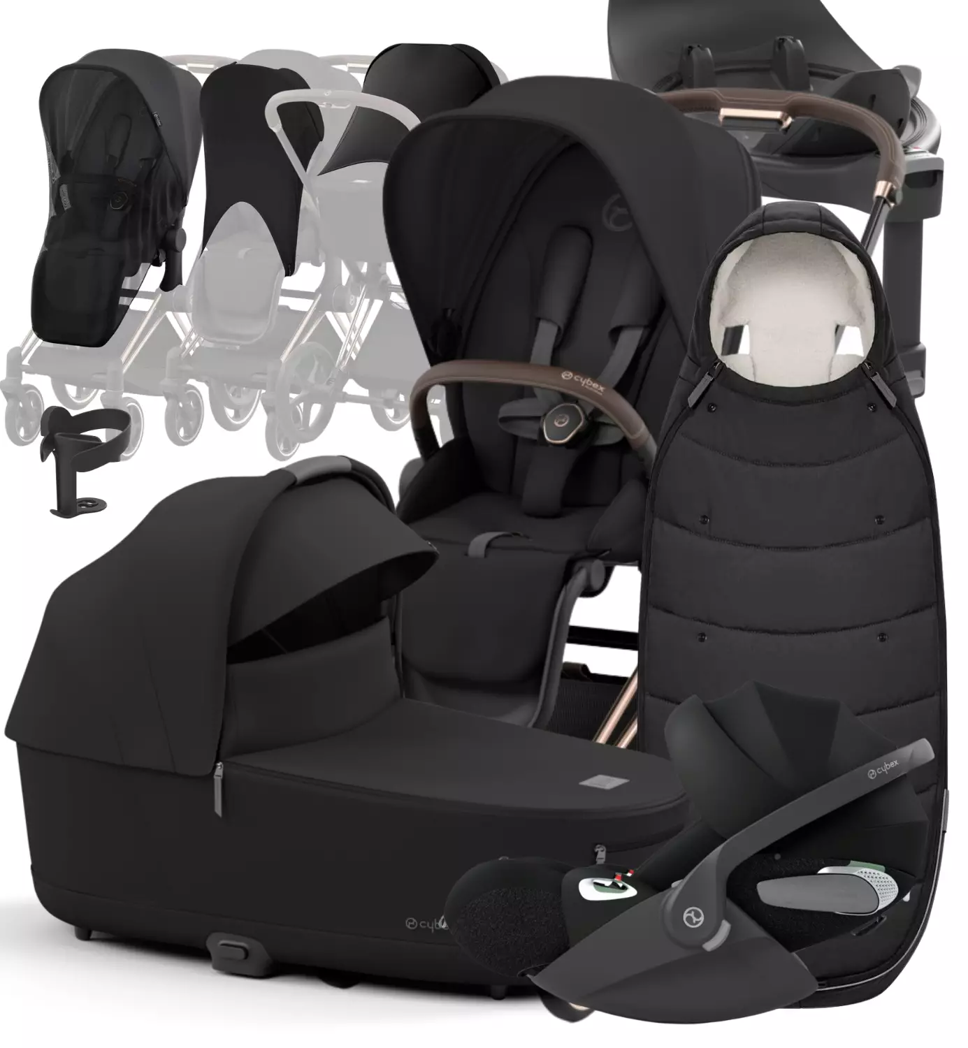 Starttipaketissa mukana Cybexin huipputurvallinen Cloud T i-Size -turvakaukalo, Base T -jalusta ja ikoniset Priam 4 yhdistelmävaunut, ja mukana tulee myös reilusti lisävarusteita, kuten sadesuojat, adapterit turvakaukalolle, hyönteissuoja rattaaseen, lämpöpussi ja paljon muuta.