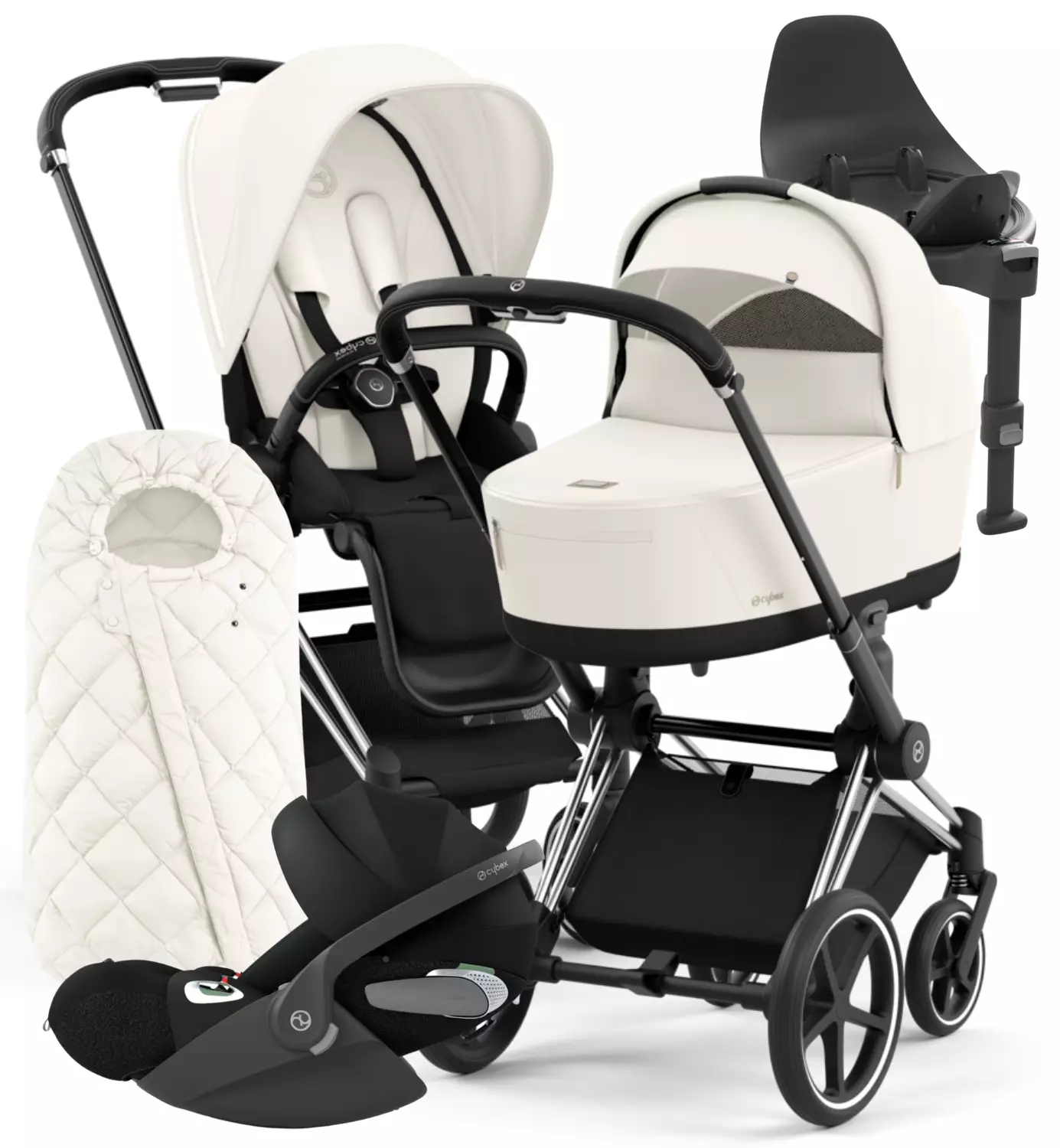 Täydellinen aloituspaketti vauvan kanssa liikkumiseen! Cybex Priam 4 yhdistelmävaunut tarjoavat tyylikkään ja käytännöllisen ratkaisun arkeen ja seikkailuihin. Paketti sisältää huipputurvallisen Cloud T i-Size -turvakaukalon, kätevän Base T -jalustan sekä Snøgga-lämpöpussin, joka pitää pienen matkustajan lämpimänä kaikissa sääolosuhteissa.