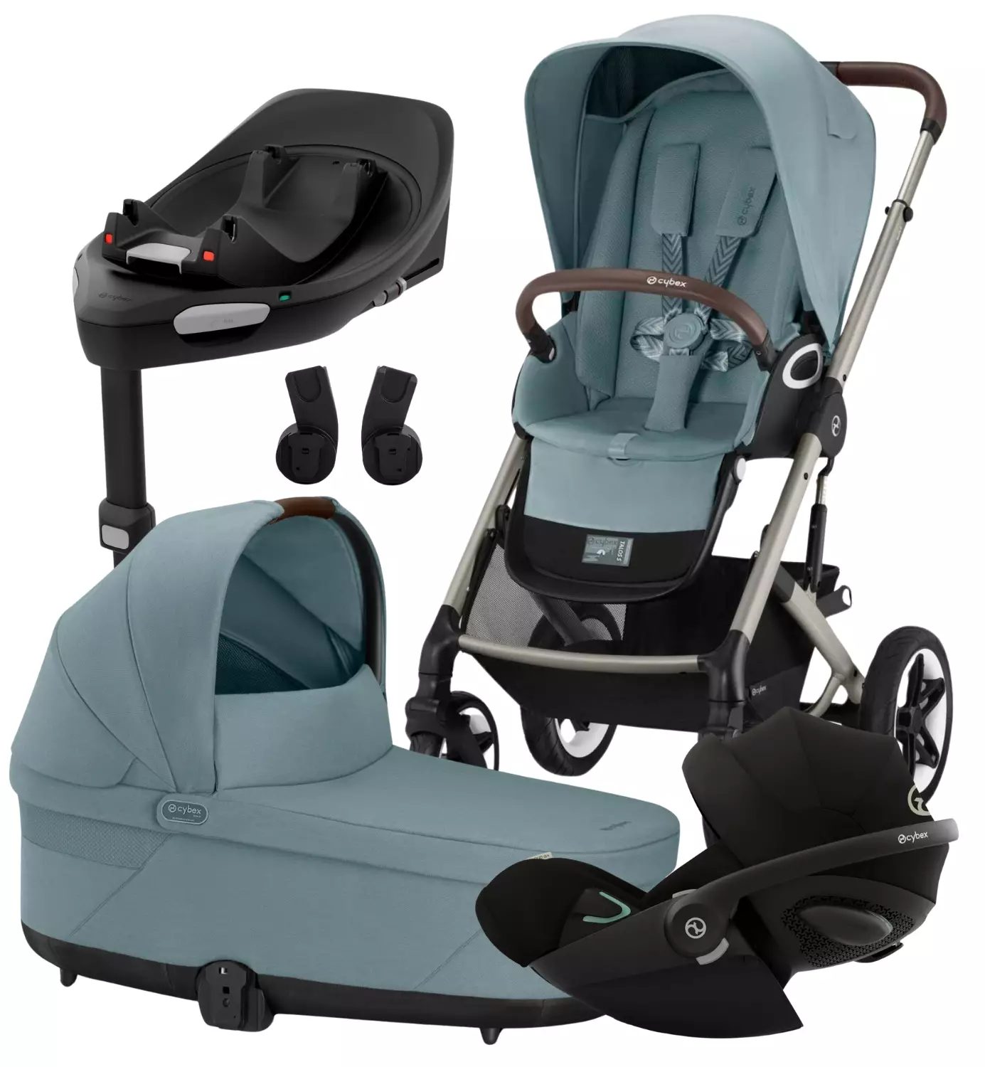 Cybex Starttipaketilla täydellinen yhdistelmä turvallisuutta, mukavuutta ja käytännöllisyyttä niin vauva-arkeen kuin perheen yhteisiin retkiin. Paketti sisältää maastoon ja kaupunkiin soveltuvat Cybex Talos S Lux -lastenvaunut, ergonomisen Cybex Cloud G i-Size -turvakaukalon, isofix-jalustan ja turvakaukaloadapterit.