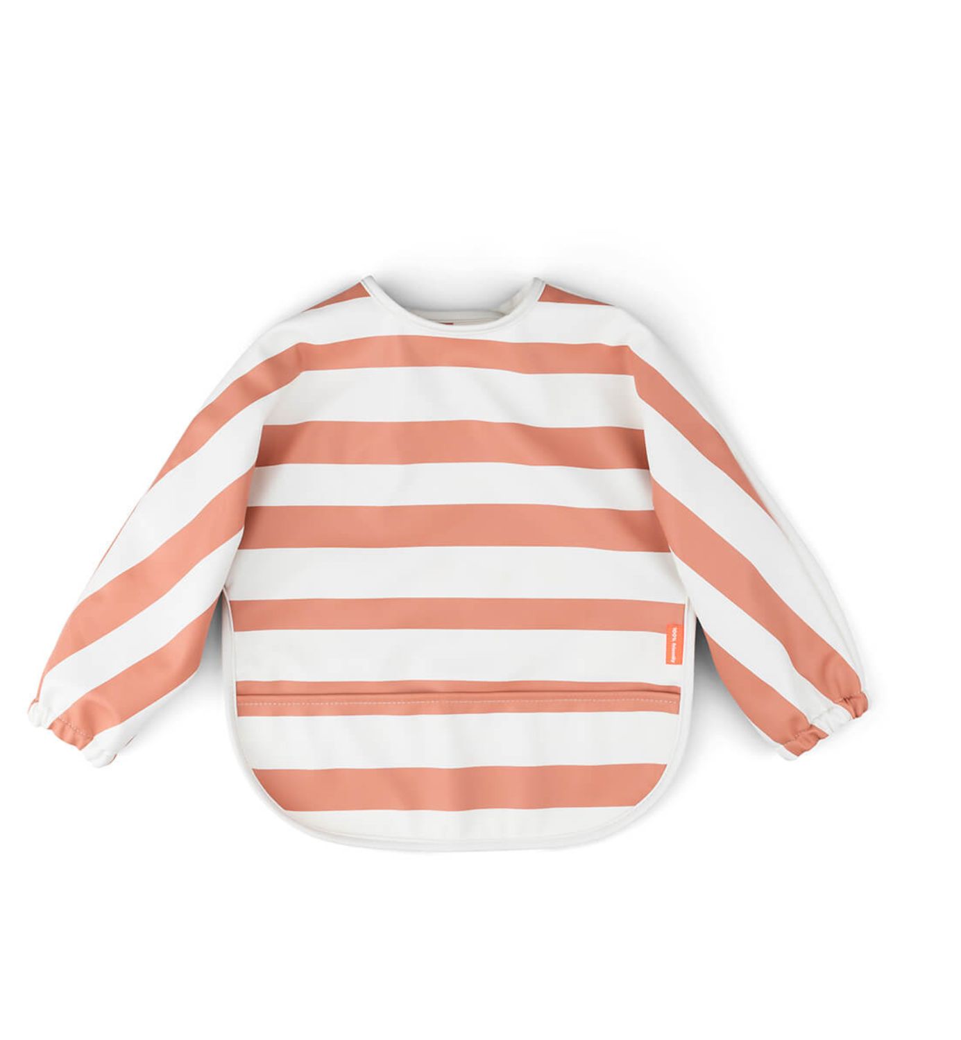 Hihallinen ruokalappu suojaa hyvin niin ruokaillessa kun vaikka askarrellessa. Rokalapussa on tasku, johon ohi menneet ruoat putoavat. Säädettävä tupla kiinnitys takaa hyvän istuvuuden niin vauvalle kun taaperollekin. Ruokalappu on vedenkestävää materiaalia ja hihoissa on kuminauhat. Se on helppo pyyhkäistä puhtaaksi ja kestää myös konepesun.