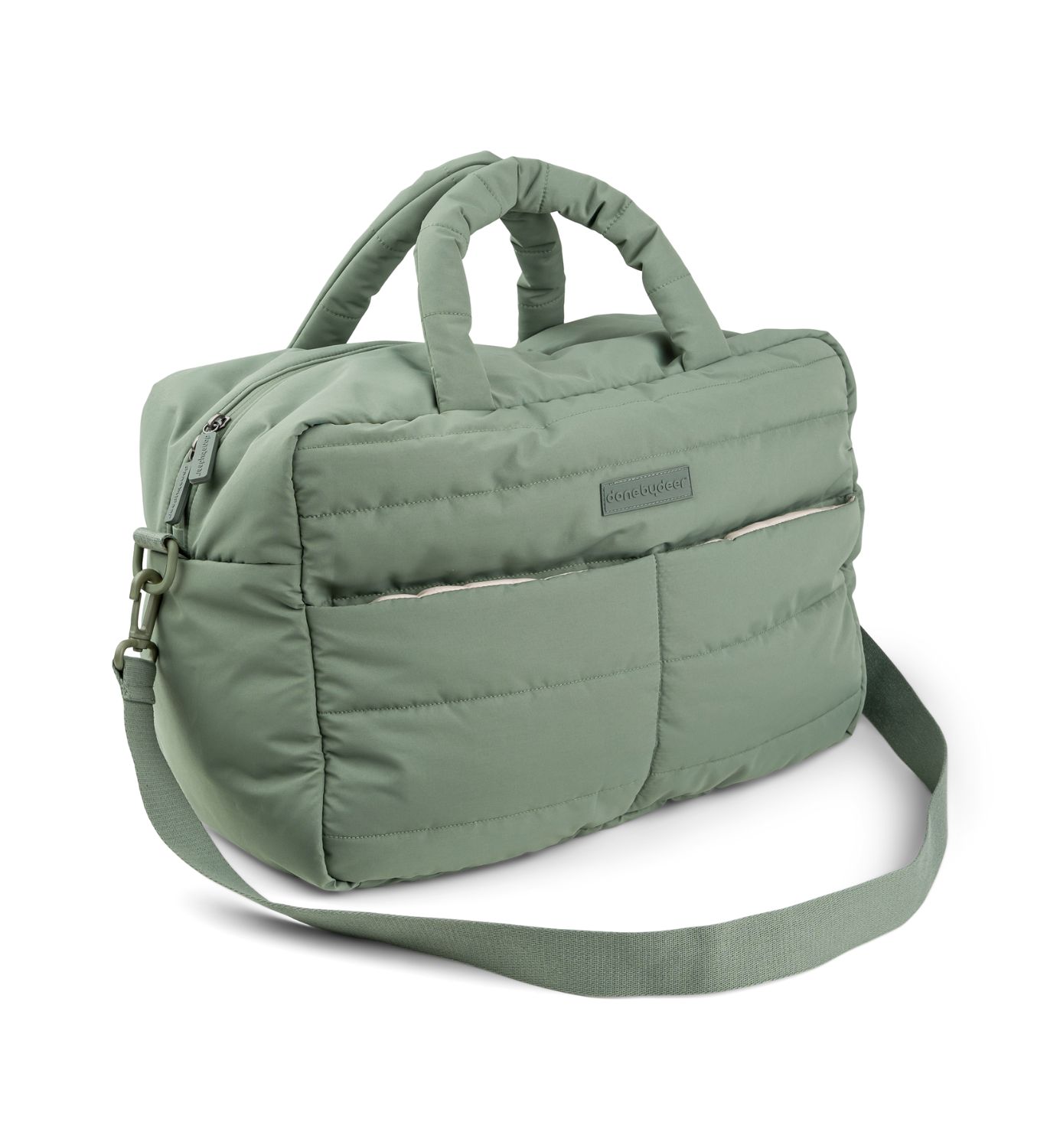 Tässä hoitolaukussa yhdistyy käytännöllisyys ja tyylikkyys. Laukkuun on käytetty 48 kierrätettävää PET muovipulloa. Laukku on erittäin tilava ja taskujen ansiosta tavarat pysyvät hyvässä järjestyksessä. Laukun voit ripustaa sen vaunuun tai rattaaseen mukana tulevilla kiinnitysremmeillä. Lisäksi matkassa tulee olkahihna, joten voit kantaa sitä mukana missävain. Taitettava kosteuden kestävä hoitoalusta kuuluu laukun varustukseen ja kulkee näppärästi aina mukana. Olkahihna ovat säädettävissä. Laukun pinta on helposti pyyhittävissä puhtaaksi kostealla liinalla.