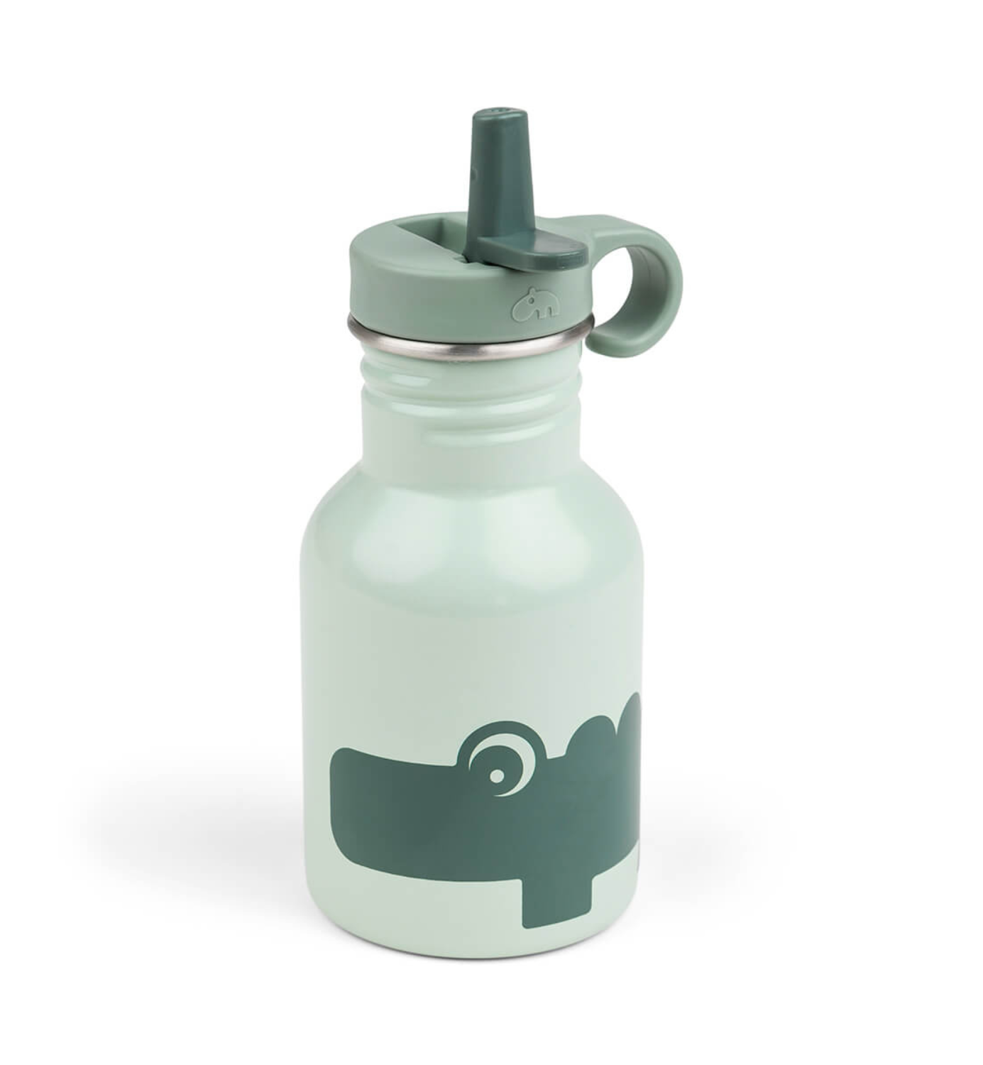 Pullo on valmistettu laadukkaasta 18/8 teräksestä. Tämä tekee pullosta erittäin kestävän ja pitkäikäisen. Pullon sisäpuolella ei ole pinnoitteita eikä se vapauta minkäänlaista makua, hajua tai kemikaaleja. Pullon mukana tulee vaihtopilli. Suloisen vihreässä pullossa hahmona Croco- krokotiili.