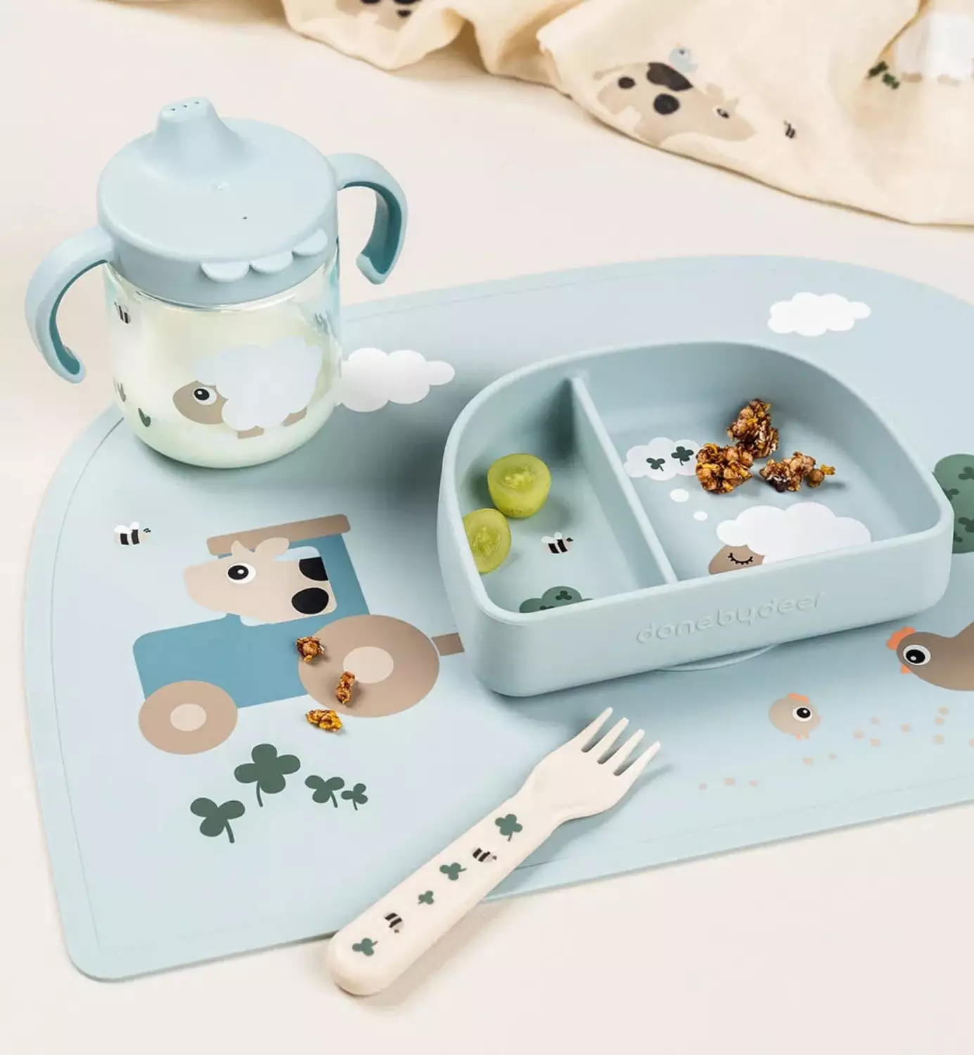 Vähemmän sotkua, enemmän huolettomia ruokailuhetkiä! Done by Deer silikoninen ruokailualusta suojaa pöytää ja pysyy paikallaan.