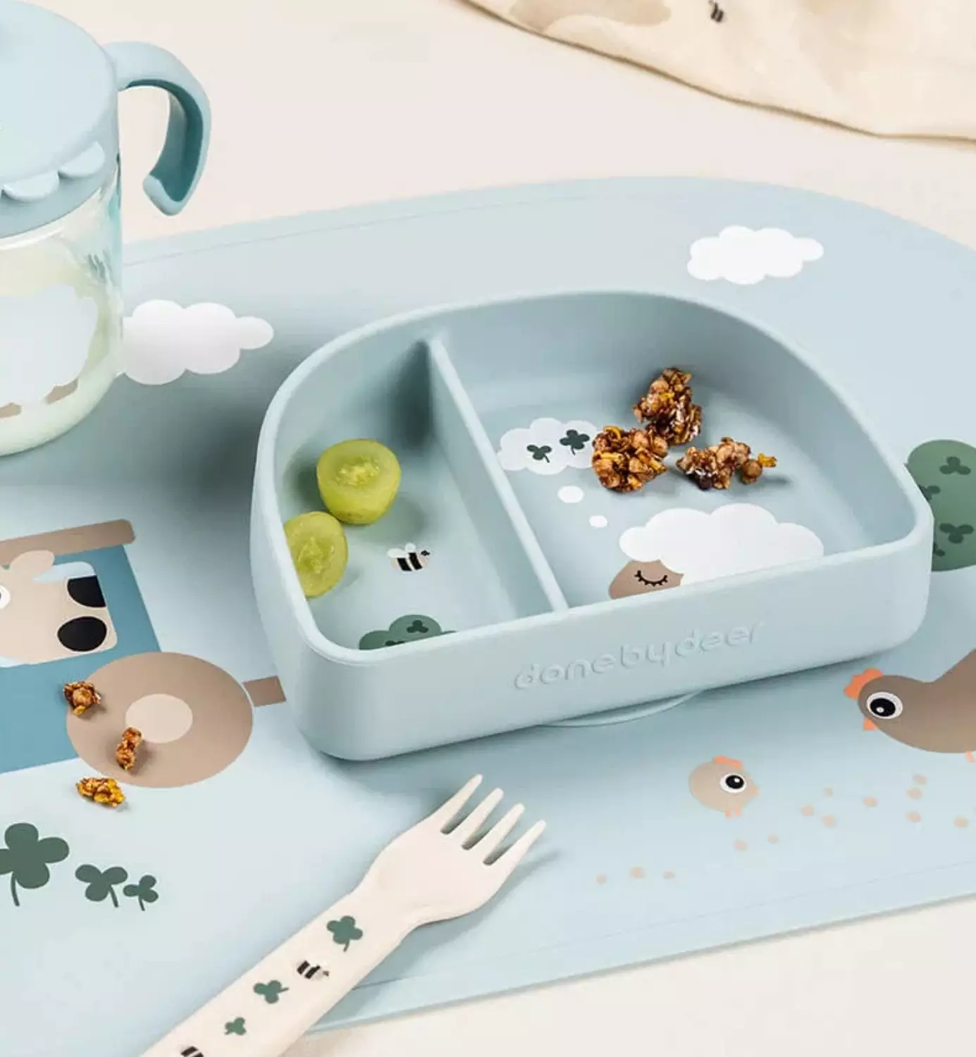 Done by Deer Stick&Stay Lasten Imukupillinen ja lokerollinen kulho/syvä lautanen