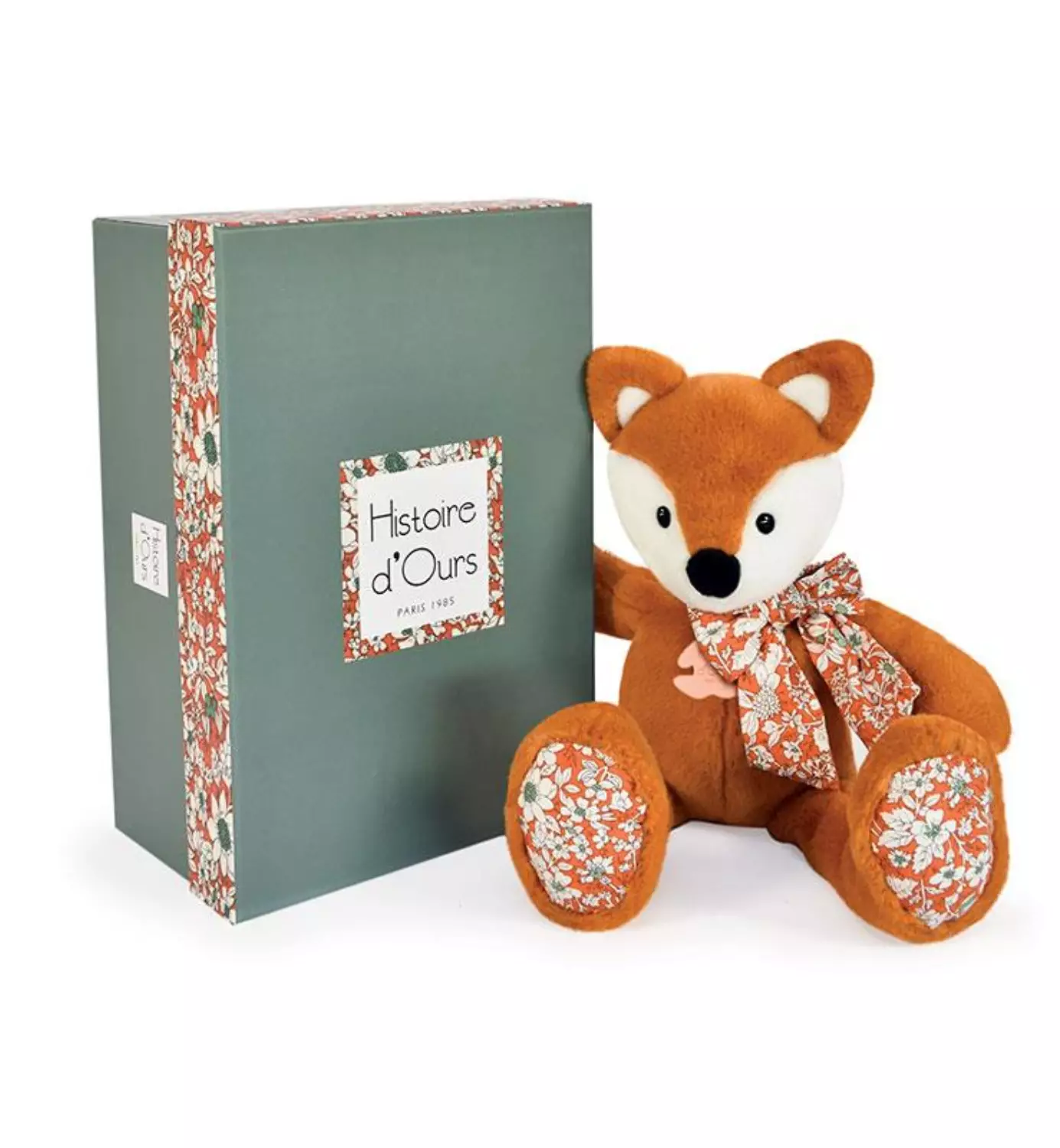 Suloisen pehmeä kettupehmolelu kauniissa lahjarasiassa. Pehmolelun korkeus on noin 34cm.