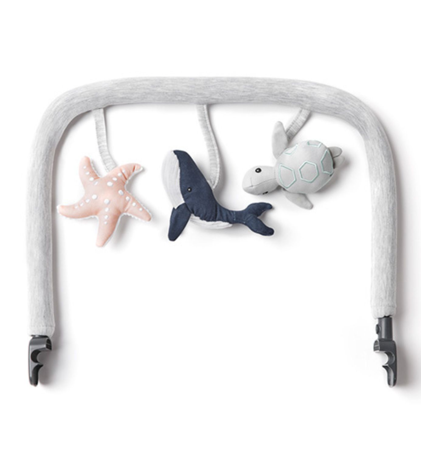 Vauva viihtyy sitterissä, kun saa katsella ja koskettaa viihdyttävää lelukaarta. Pehmeää lelukaarta koristaa kolme meriaiheista hahmoa ja se on hauska lisä vastasyntyneelle. Lelukaari on helppo kiinnittää sitteriin ja ottaa pois.