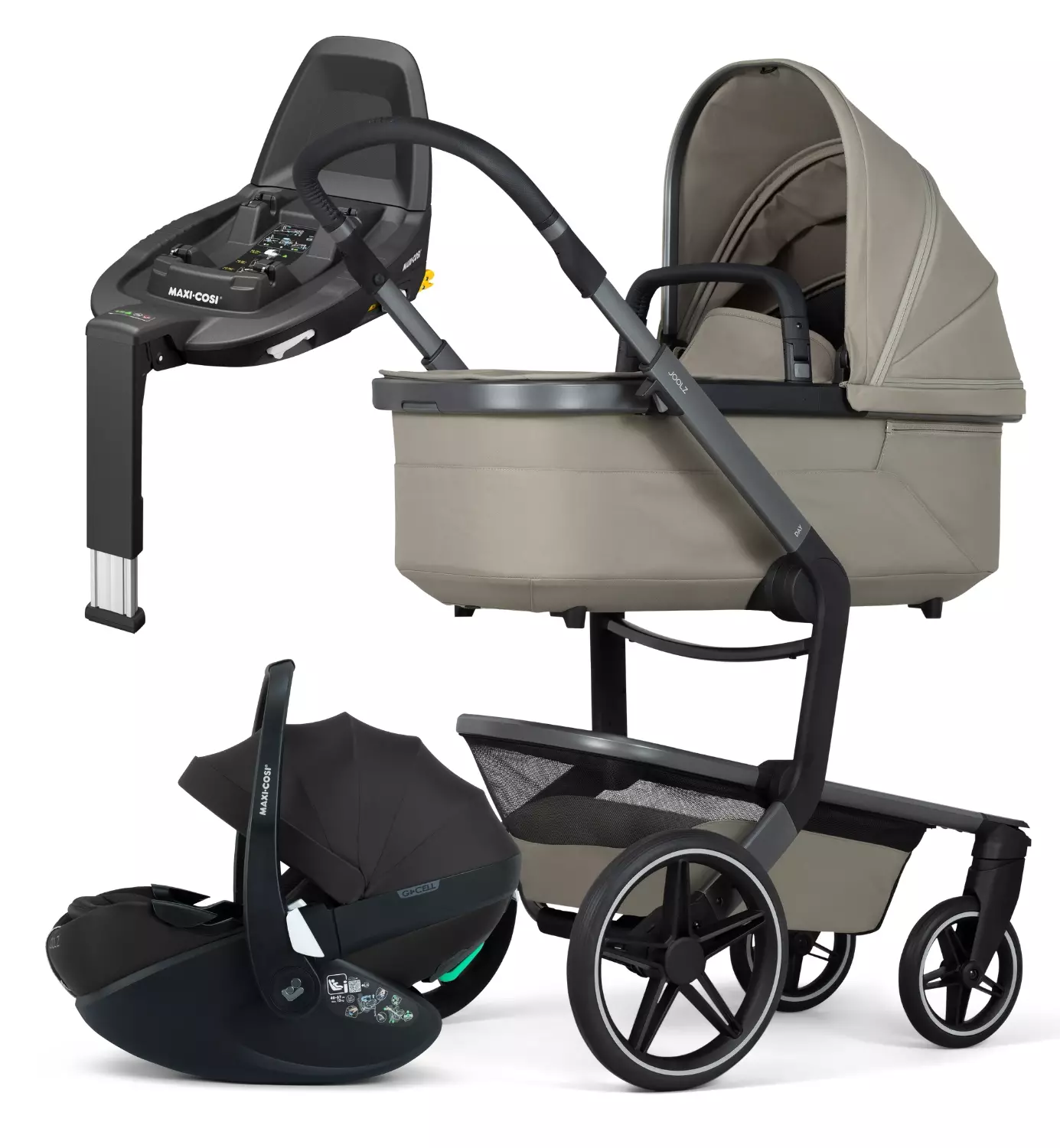 Kaikki tarvittava vauvan kanssa kulkemiseen samassa kätevässä Starttipaketissa. Mukana yhdistelmävaunut, adapterit turvakaukalolle, makuuasentoon kallistuva turvakaukalo ja Isofix- jalusta, jolla käännät kaukalon käytettäessä kätevästi auton ovelle.