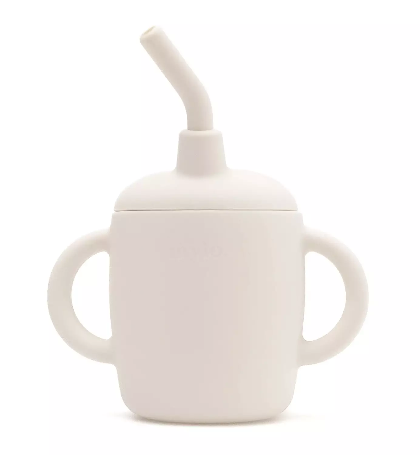 Silikoninen kahvallinen pillimuki sopii hyvin pienille käsille.