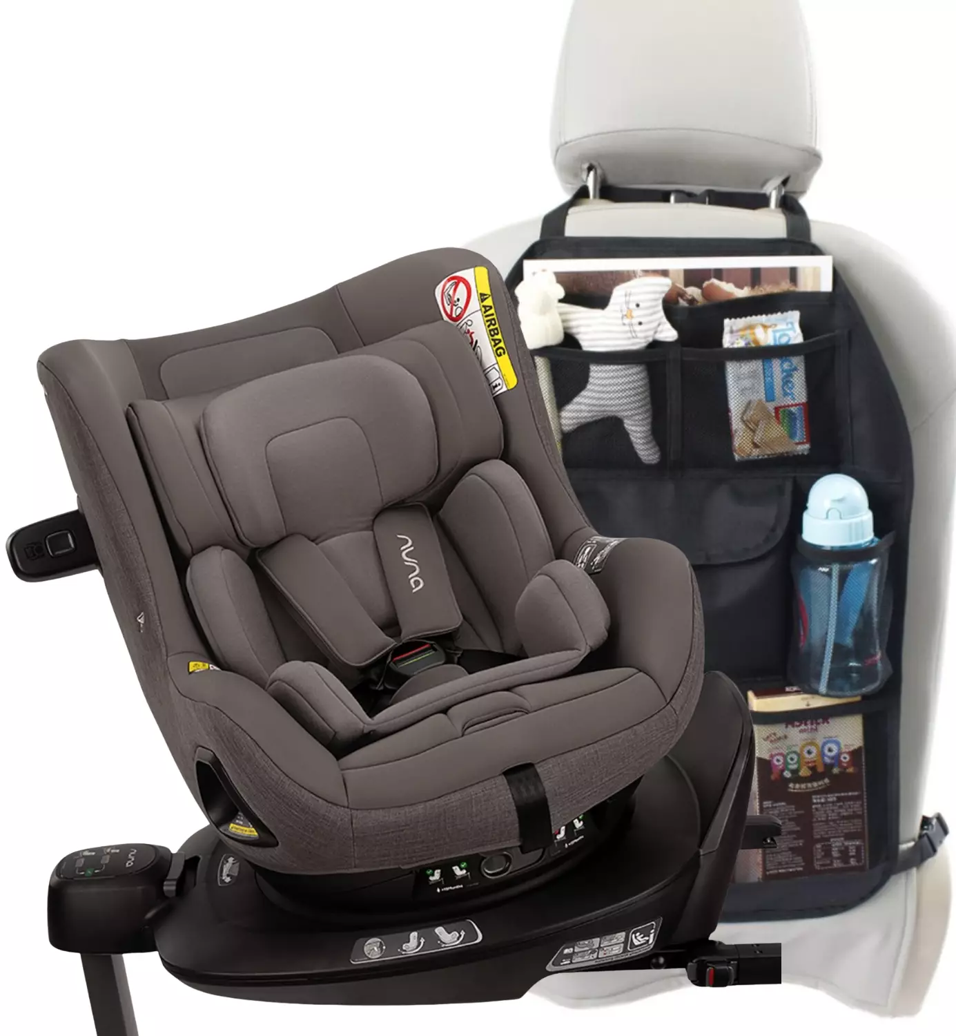 360° kääntyvä Nuna Pruu turvaistuin + kätevä, kierrätetystä materiaalista valmistettu Ezimoov Travel Plus lokerikko samassa paketissa!