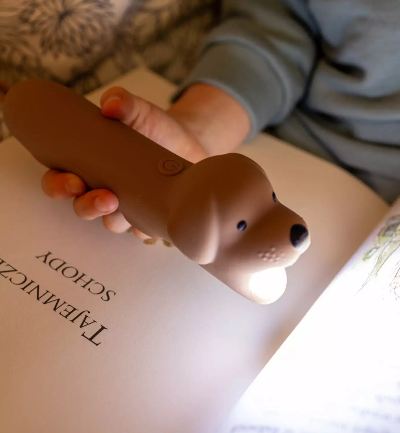 Taskulamppu on pehmeästä silikonista valmistettu hauska ja käytännöllinen valaisin, joka kulkee mukana iltaseikkailuissa, leikeissä ja satutuokioissa. Koiran muotoinen taskulamppu syttyy sopivasti pienten käsien kosketuksesta ja sen kirkkauden voi säätää tilanteen mukaan – pehmeä yövalo tai kirkas valo seikkailuun!