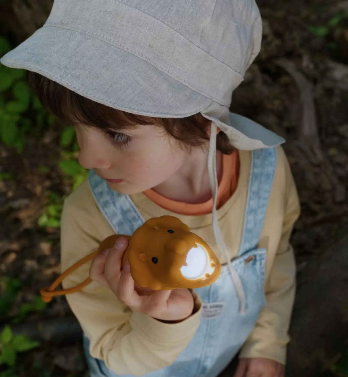 Taskulamppu on pehmeästä silikonista valmistettu hauska ja käytännöllinen valaisin, joka kulkee mukana iltaseikkailuissa, leikeissä ja satutuokioissa. Leijonan muotoinen taskulamppu syttyy sopivasti pienten käsien kosketuksesta ja sen kirkkauden voi säätää tilanteen mukaan – pehmeä yövalo tai kirkas valo seikkailuun!