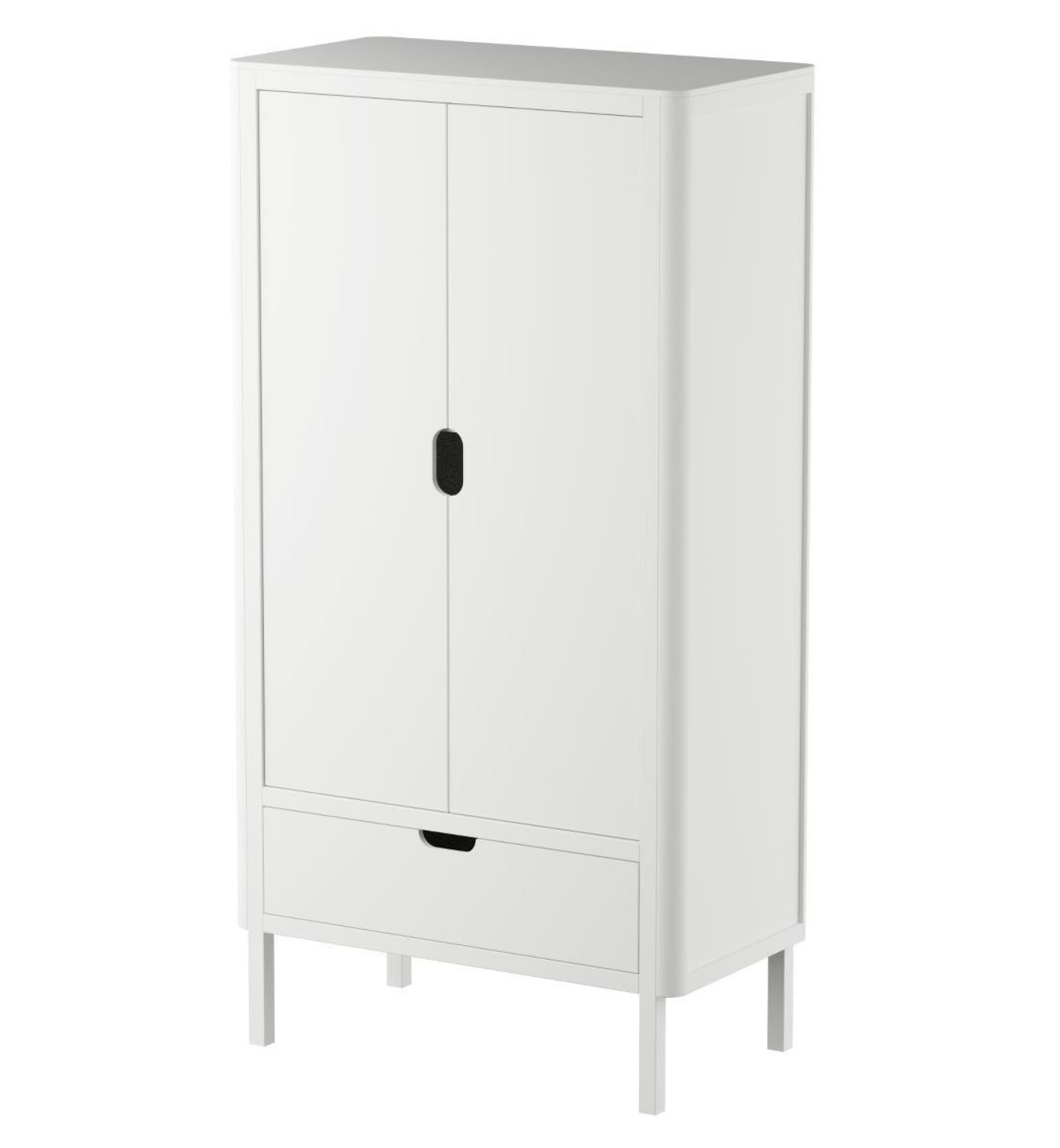 Skandinaavista tyylikkyyttä lastenhuoneeseen tuo valkoinen vaatekaappi, jossa laatikko, kolme hyllyä sekä vaatetanko. Tilavan kaapin hyllytasoja voi vaihdella tarpeen mukaan helposti ilman työkaluja. Myös vaatetangon korkeus on säädettävissä. Laatikossa on hidastin, joten se sulkeutuu pehmeästi eikä pienet sormet jää niin helposti väliin. Kaikki kulmat ovat pyöristettyjä, joten kaappi on turvallinen valinta lastenhuoneeseen. Kaappi seisoo tukevasti neljällä jalalla ja sen alla voi myös säilyttää tavaraa. Elegantti kaappi sopii loistavasti myös muihin huoneisiin, joten käyttötarkoitus ei rajoitu vain lastenhuoneeseen. Sebra vaatekaappi on suunniteltu Tanskassa ja valmistettu Euroopassa.