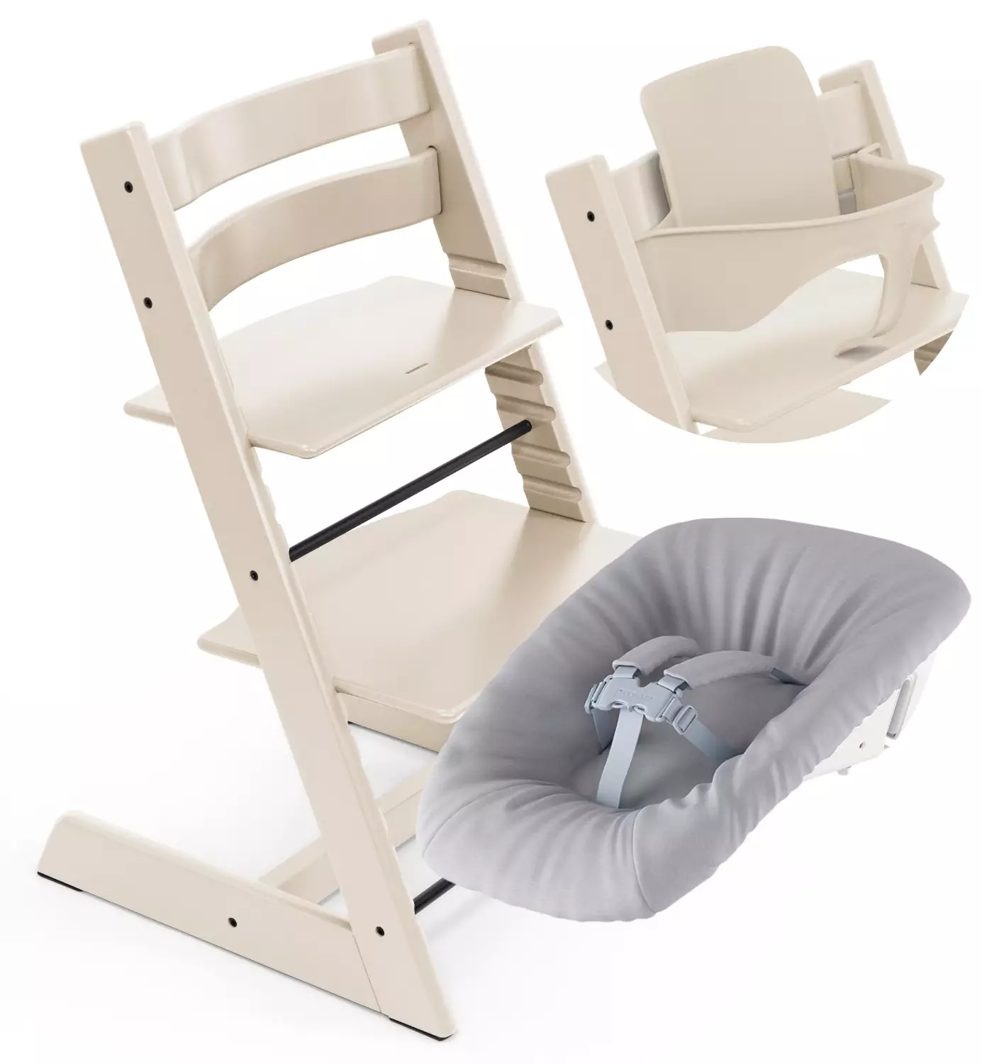 Starttipaketti vauvan ja lapsen ensimmäisiin vuosiin. Vastasyntynyt pääsee Newborn Setin kanssa perheen yhteisiin ruokahetkiin mukaan ja lähelle arjen askareita hoidettaessa. Kun vauva kasvaa ja aloittaa tutkimusmatkan ruokailun maailmaan, vaihdetaan tuoliin vauvasetti ja siitä tulee syöttötuoli.