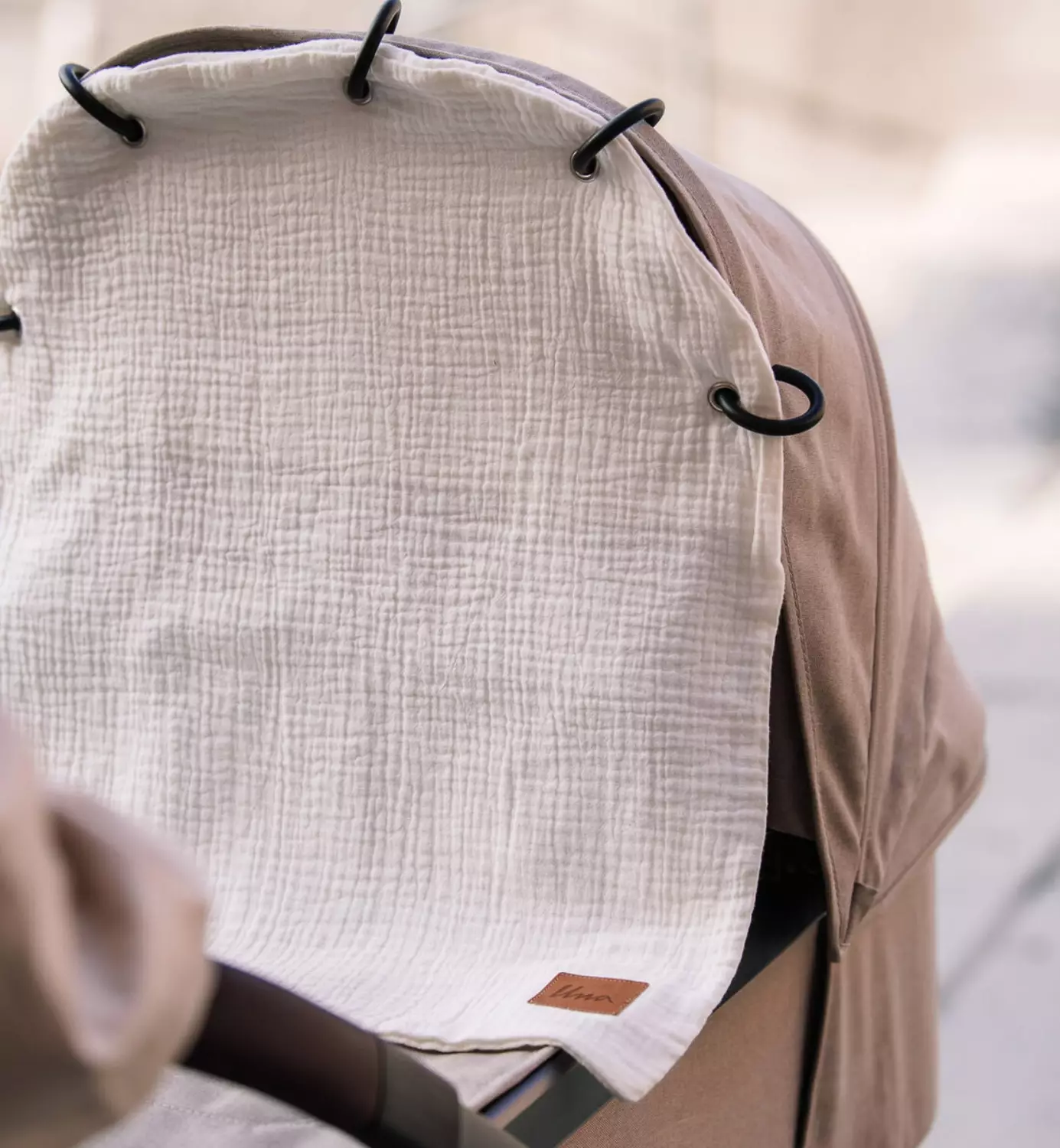 - Materiaali: Vaunuverho 100% Ökö-Tex-sertifioitu puuvilla, Una-logo keinonahkaa.