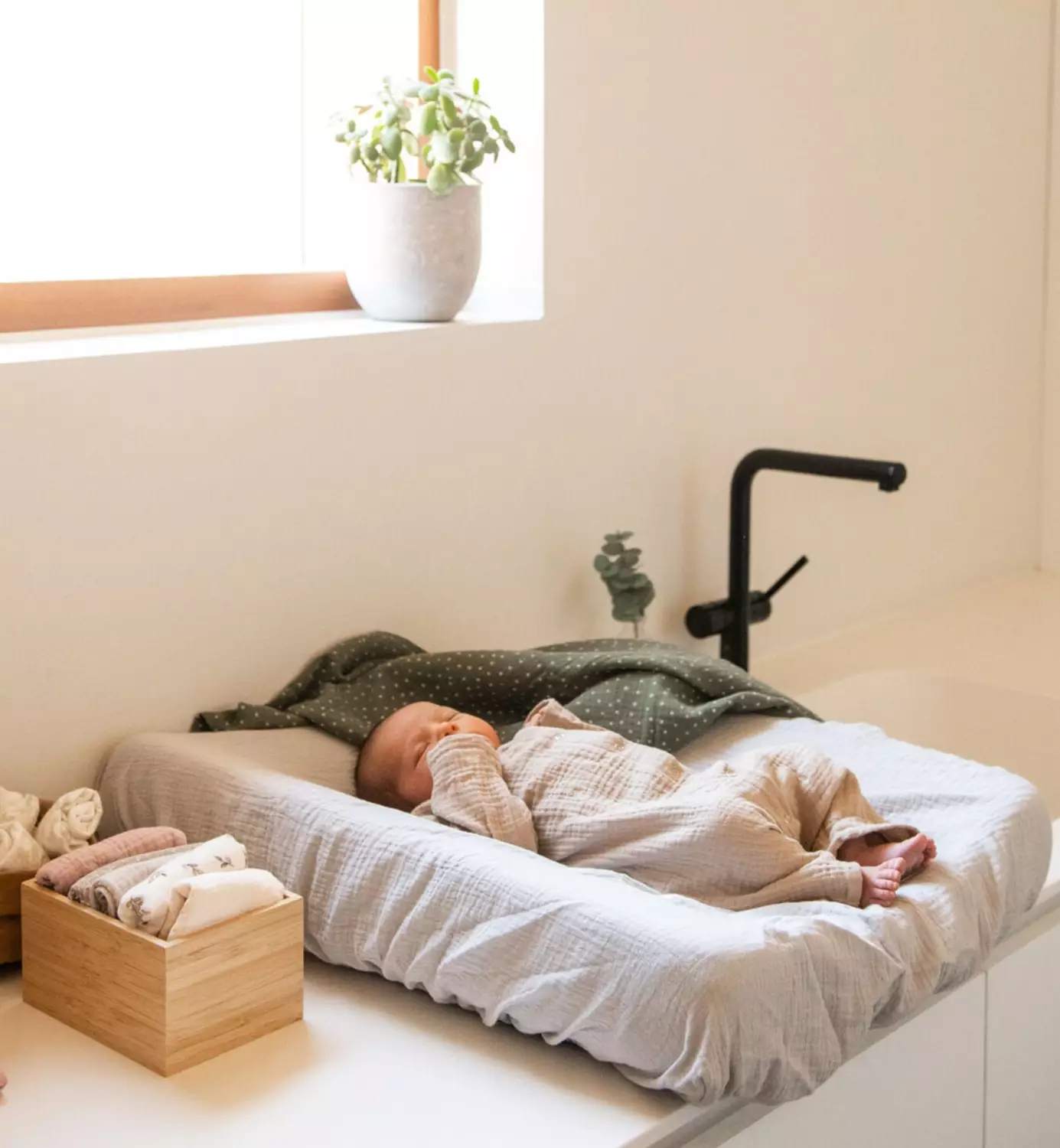 100% puuvillasta valmistettu, pehmeä, harsokankainen päällinen hoitoalustalle. Hoitoalusta on helppo suojata päällisellä, jonka saa näppärästi vaihdettua ja pestyä koneessa. Hoitoalustan päällinen on miellyttävän tuntuinen lapsen ihoa vasten. Pussimainen päällinen sopii noin 50 x 60 cm kokoisen tai vähän reilumman kokoisen alustan päälle ja pysyy kuminauhan ansiosta hyvin paikallaan.