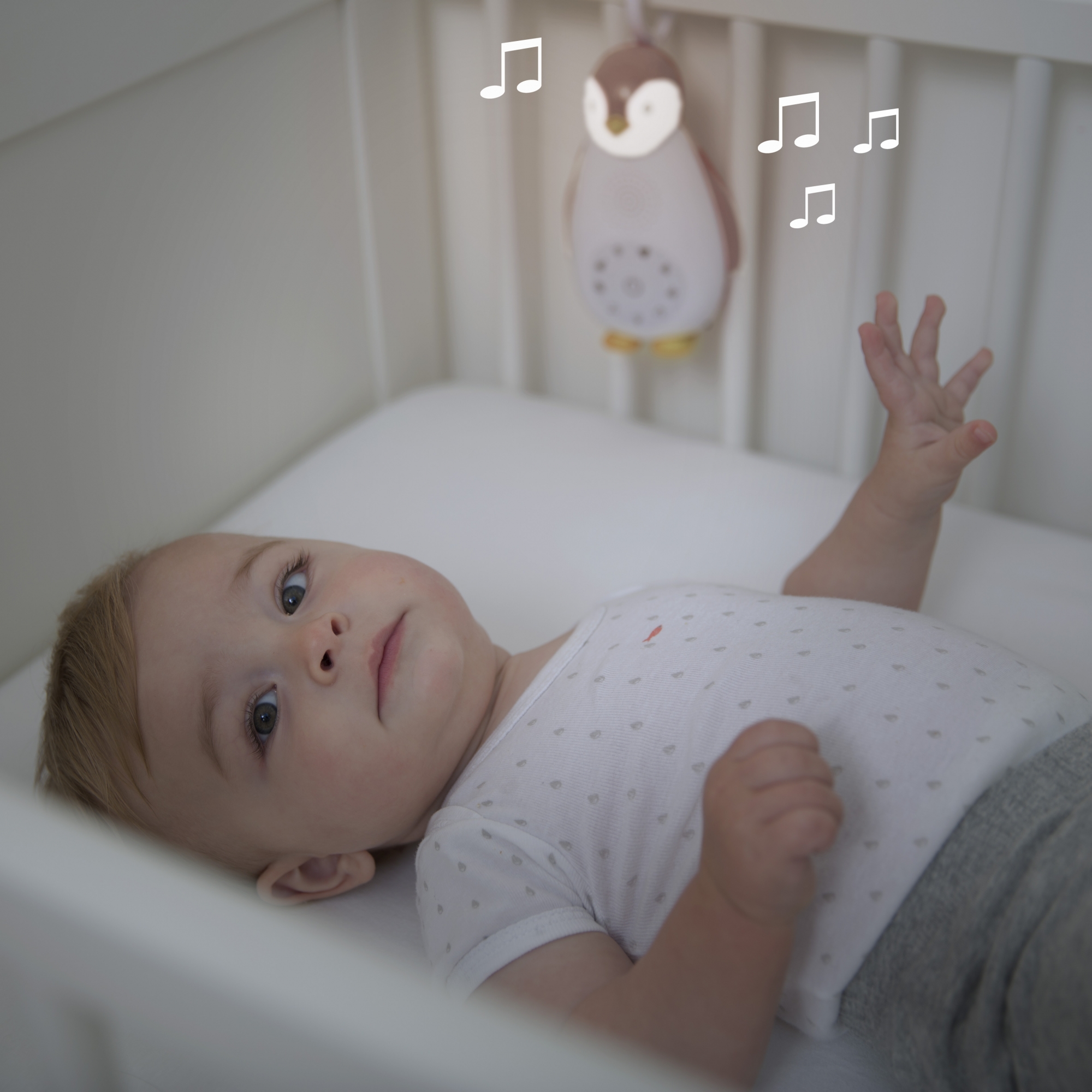 Ota Zoe Pingviini mukaan matkalle! Ihana pingviini-hahmo pitää seuraa lapsellesi omassa sängyssä, lenkillä rattaissa ja automatkalla! Laitteeseen on ohjelmoitu valmiiksi seitsenän eri melodiaa; kohdun äänet sydämmensykkeellä, valkoinen kohina, luonnon äänet, lounge-musiikki sekä kolme perinteistä kehtolelulua. Voit myös soittaa laitteesta mitä tahansa musiikkia langattomasti puhelimesi kautta. Zoe:n pää toimii yövalona sen kirkkautta voi säätää kahteen eri tasoon. Ääniaktivoituva sensori käynnistää sekä äänet että valot jos lapsesi herää ja itkee. Sekä ääni- että valotoiminto sammuu automaatisesti 20 minuutin jälkeen.