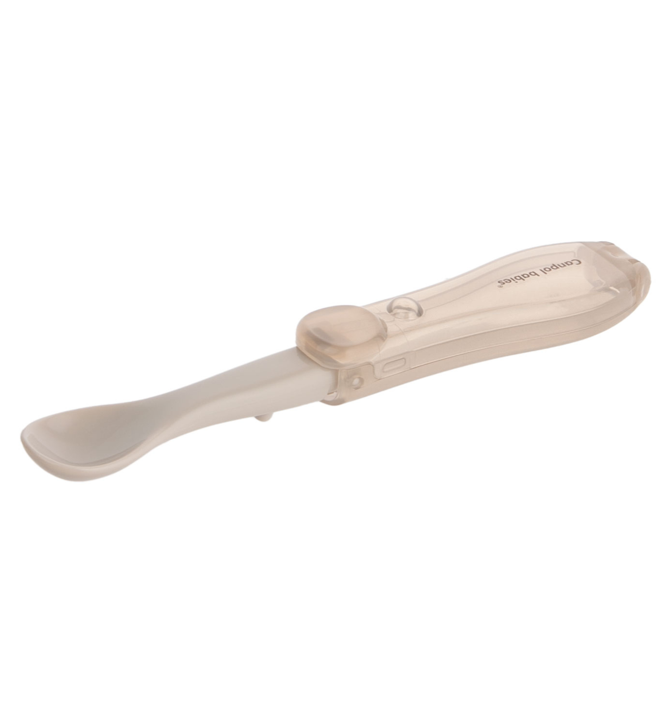 Reissussa tai retkellä - puhdas lusikka aina mukana. Taitettava matkalusikka on aina suojassa ja puhdas. Lusikka on helppo avata yhdellä napsautuksella ja käytön jälkeen se taittuu koteloonsa ja on helppo sujauttaa laukkuun. Lusikassa on pyöristetyt reunat ja lusikka soveltuukin jo vauvalle sekä itsenäisen syömisen harjoitteluun.