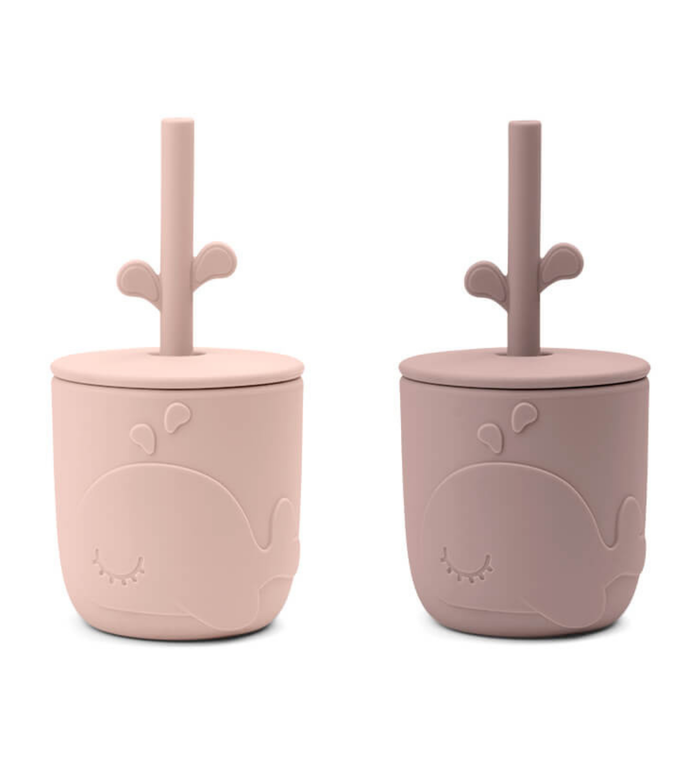 Kivat silikoniset pillimukit ovat täydelliset pieneen käteen. Kansi pitää juoman mukissa ja pillin paikoillaan.