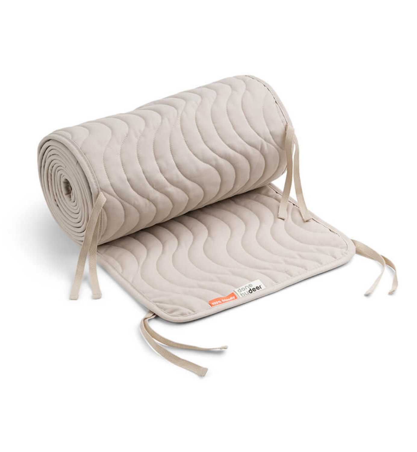 Pinnasängyn reunapehmuste luo mukavan ja turvallisen pesän vauvalle. Luomupuuvillainen kangas on miellyttävä ja pehmeä ja reunapehmuste on helppo kiinnittää narujen avulla. Reunapehmuste sopii standardikokoiseen 60 x 120 cm pinnasänkyyn.