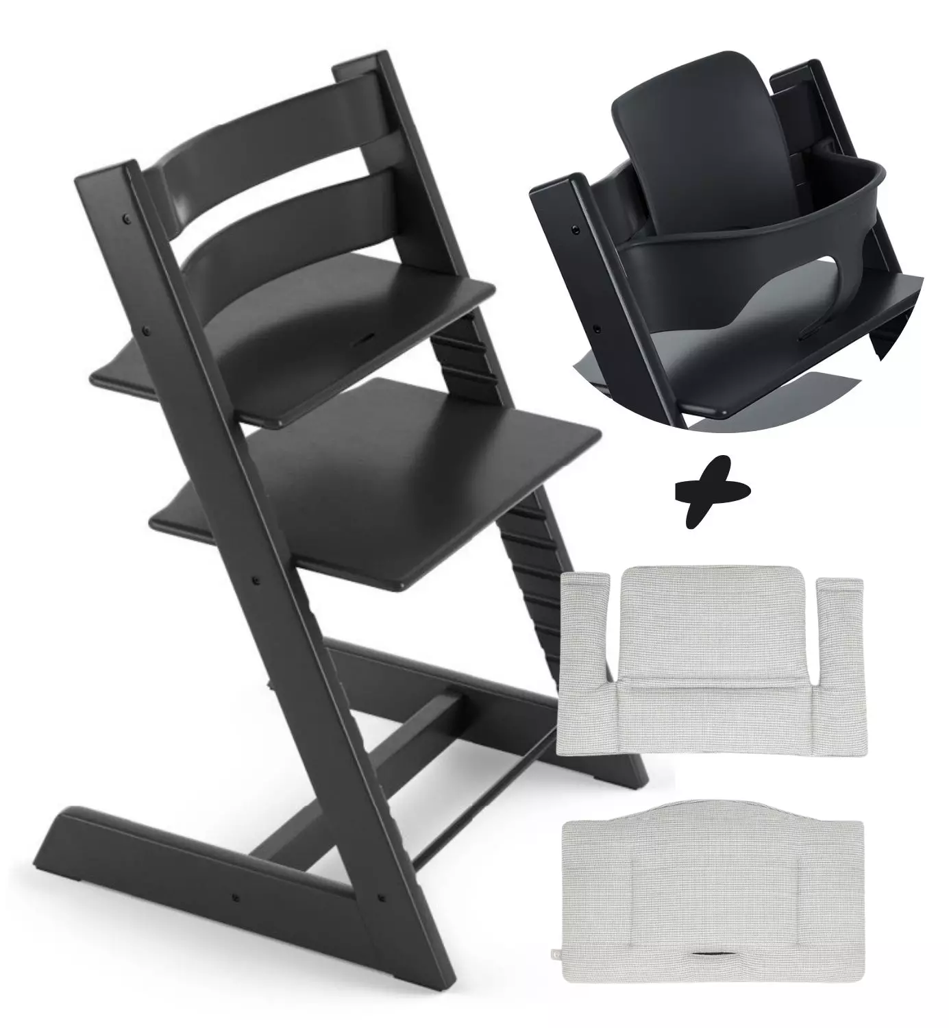 Etsitkö monikäyttöistä, ergonomista ja tyylikästä syöttötuolia, joka kestää vuosia? Stokke Tripp Trapp Starttipaketti sisältää Tripp Trapp tuolin, Baby Set -vauvasetin ja pehmusteen, jotta vauvasi ruokailuhetket ovat alusta asti mukavia ja turvallisia.
