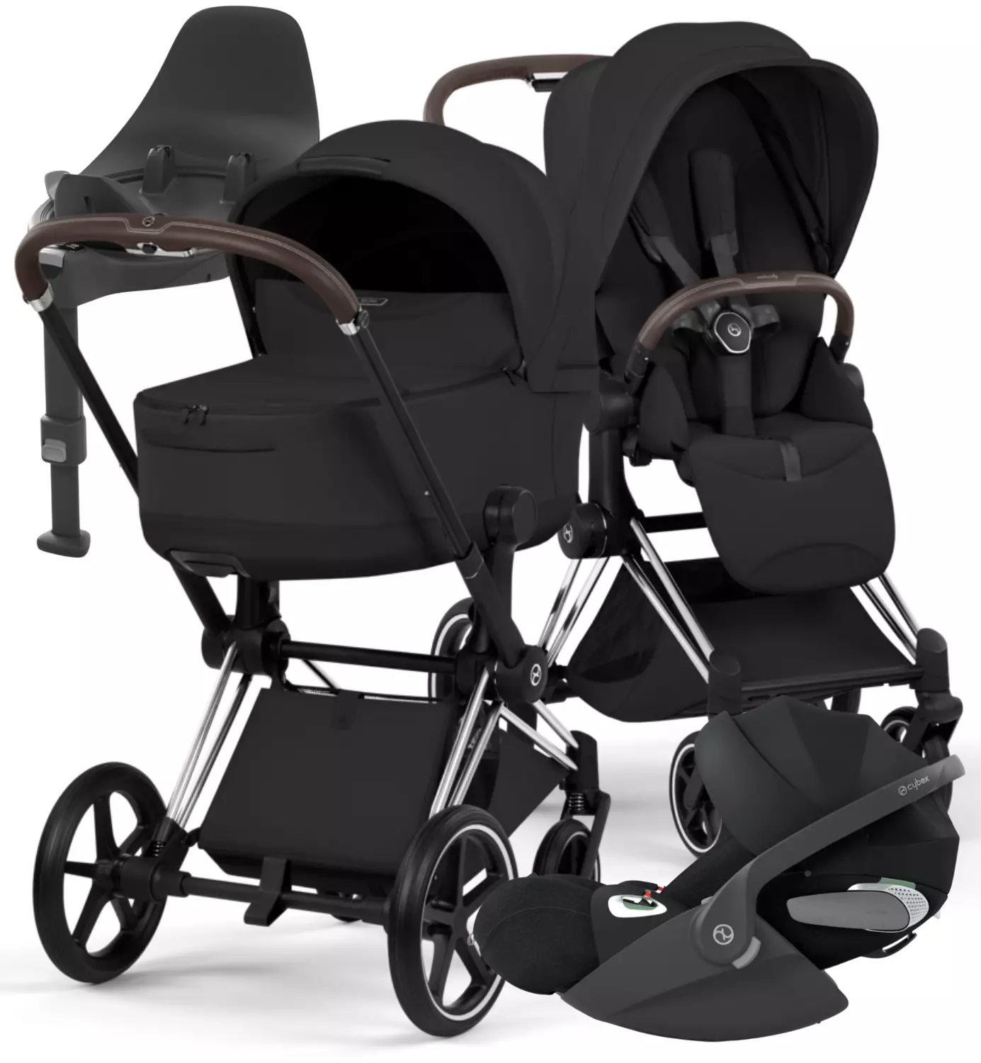 Cybex Priam Style Lastenvaunujen Starttipaketti Cloud T turvakaukalolla ja jalustalla chrome brown sepia black wauva - Yhdistelmävaunut - 526000201SPYSB - 3