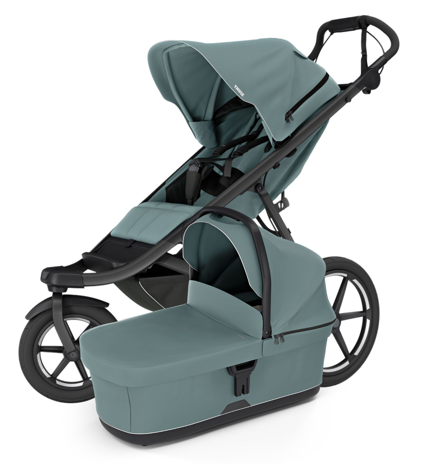 Thule Urban Glide 3 yhdistelmävaunut sopivat loistavasti aktiiviseenkin elämäntyyliin. Kevyt alumiinirunko ja suuret ilmatäytteiset renkaat tekevät rattaista helposti ohjattavat niin kaupungin kapeilla kaduilla kuin vaihtelevassa maastossakin. Kääntyvä etupyörä voidaan lukita kulkemaan suoraan, mikä tekee vaunuista täydelliset myös juoksulenkeille.