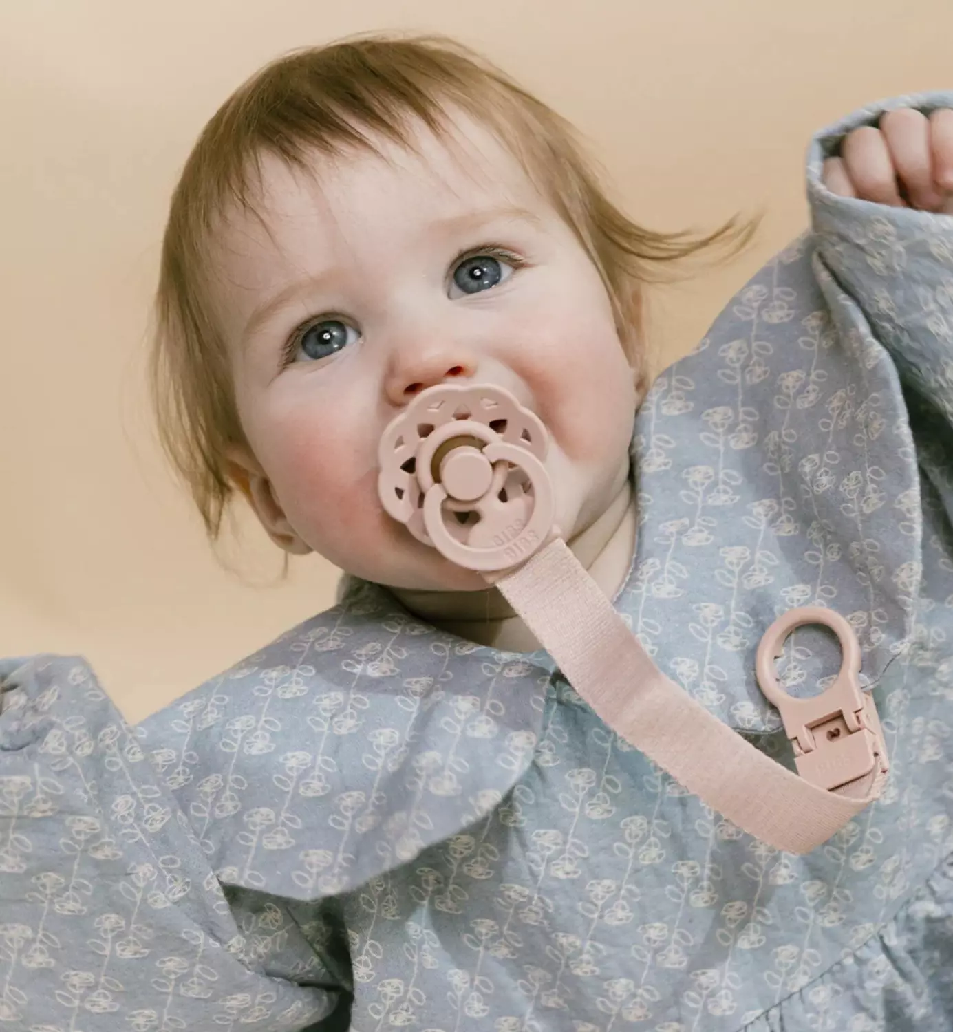 Tyylikäs ja käytännöllinen tuttinauha, jossa yhden käden kiinnitys, joustava silikonirengas ja konepesun kestävä materiaali. Yhteensopiva kaikkien BIBS-tuttien kanssa. Ikäsuositus 0+.