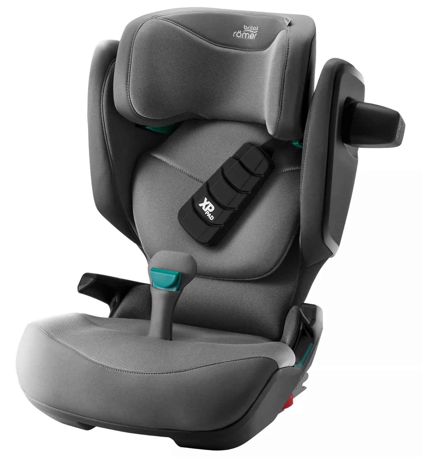 XP-PAD-teknologia vähentää etutörmäyksessä lapsen pään eteenpäin suuntautuvaa liikettä jopa 30 % *, suojaten kaulaa ja niskaa. Pehmustettu reuna estää turvavyön painautumisen lapsen ihoa vasten, lisäten matkustusmukavuutta.