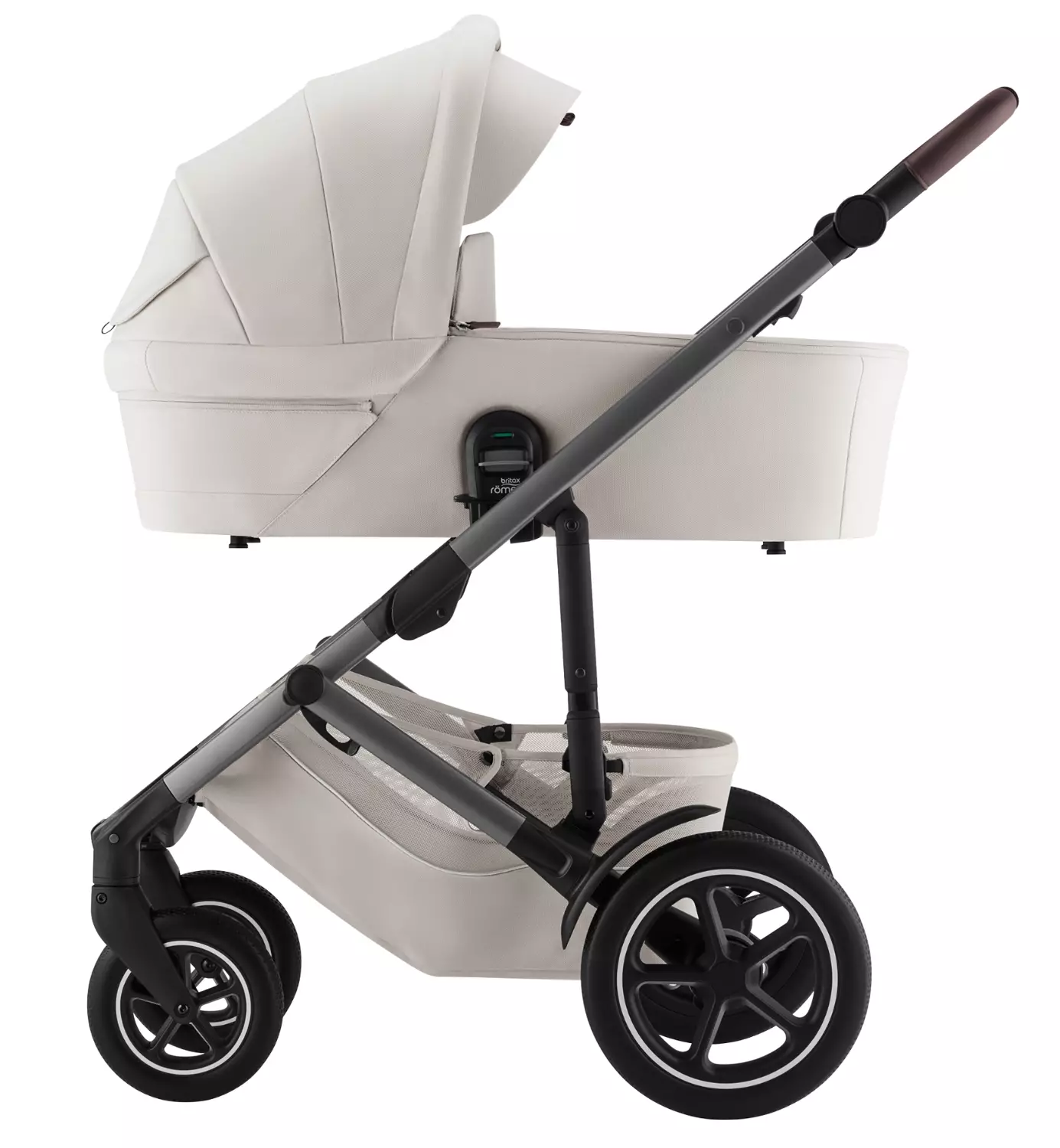 - Vaunukoppa: Tilavassa vaunukopassa ilma kiertää hyvin ja se sopii vastasyntyneille aina noin 6 kuukauden ikään saakka (painoraja 9 kg). Vaunukopassa on UPF 50+ -suojattu kuomu ja panoraamatuuletusikkuna, joka mahdollistaa ilman hyvän kierron kuuminakin päivinä ja näkymiä pienelle matkustajalle lisäten viihtyvyyttä.