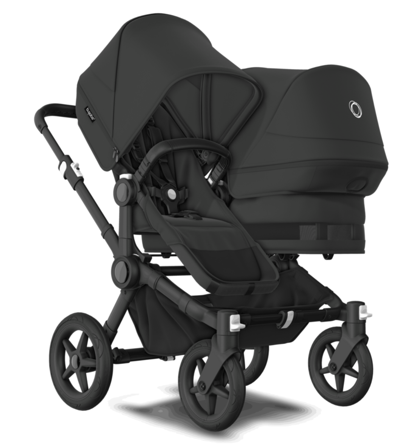 Bugaboo Donkey 5 Duo on ylivoimaisesti suosituin vierekkäinen vaunukokonaisuus kasvavalle perheelle. Rungossa on käytetty patentoitua mekanismia, minkä ansiosta rungon leveyttä pystyy säätämään helposti kolme klipsiä avaamalla. Donkey-sarjalla on kolme erilaista käyttötapaa: Mono yhdelle lapselle, Duo sisaruksille ja Twin kaksosille. Kaikkien mallien pohjana toimii sama runkorakenne ja vauunukoppa-/ratasistuinekehikkojen ja tekstiilien määrä vaihtelee paketin mukaan. Kaikissa eri kokoonpanoissa on myös mahdollista käyttää istuma-/seisomalautaa, mikä kiinnittyy suoraan rungon taka-akseliin, jolloin kyydissä voi olla parhaimmillaan kolme lasta! Yksikkövaunuina käytettäessä vaunujen leveys on vain 60cm eli se vastaa ulkomitoiltaan Bugaboon Fox-sarjan vaunuja, mitkä on tarkoitettu aina yhdelle lapselle. Myös leveämmässä asetuksessaan sisarus- tai kaksoskäytössä kokonaisuuden leveys on vain 74 cm, jolloin vaunut mahtuvat helposti kaikista standardikokoisista oviaukoista sekä hisseistä. Koska vaunujen työntöaisan saa myös säädettyä erittäin alas, ovat vaunut kätevät myös julkisissa käytettäessä kun ohikulkijat pääsevät helposti sujahtamaan ohi kun kokonaisuus on kompakti myös syvyyssuunnassa.