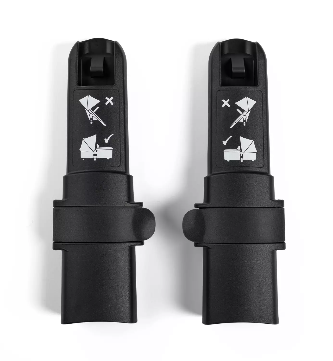 Nosta Bugaboo Donkey -rattaiden vaunukoppaa 10 cm ylemmäs! Adapterit tuovat lapsesi sinua lähemmäs ja helpottavat tavarakorin käyttöä vaunukopan kanssa. Voi käyttää myös turvakaukaloadaptereiden kanssa. Ei saa käyttää ratasistuimen kanssa.