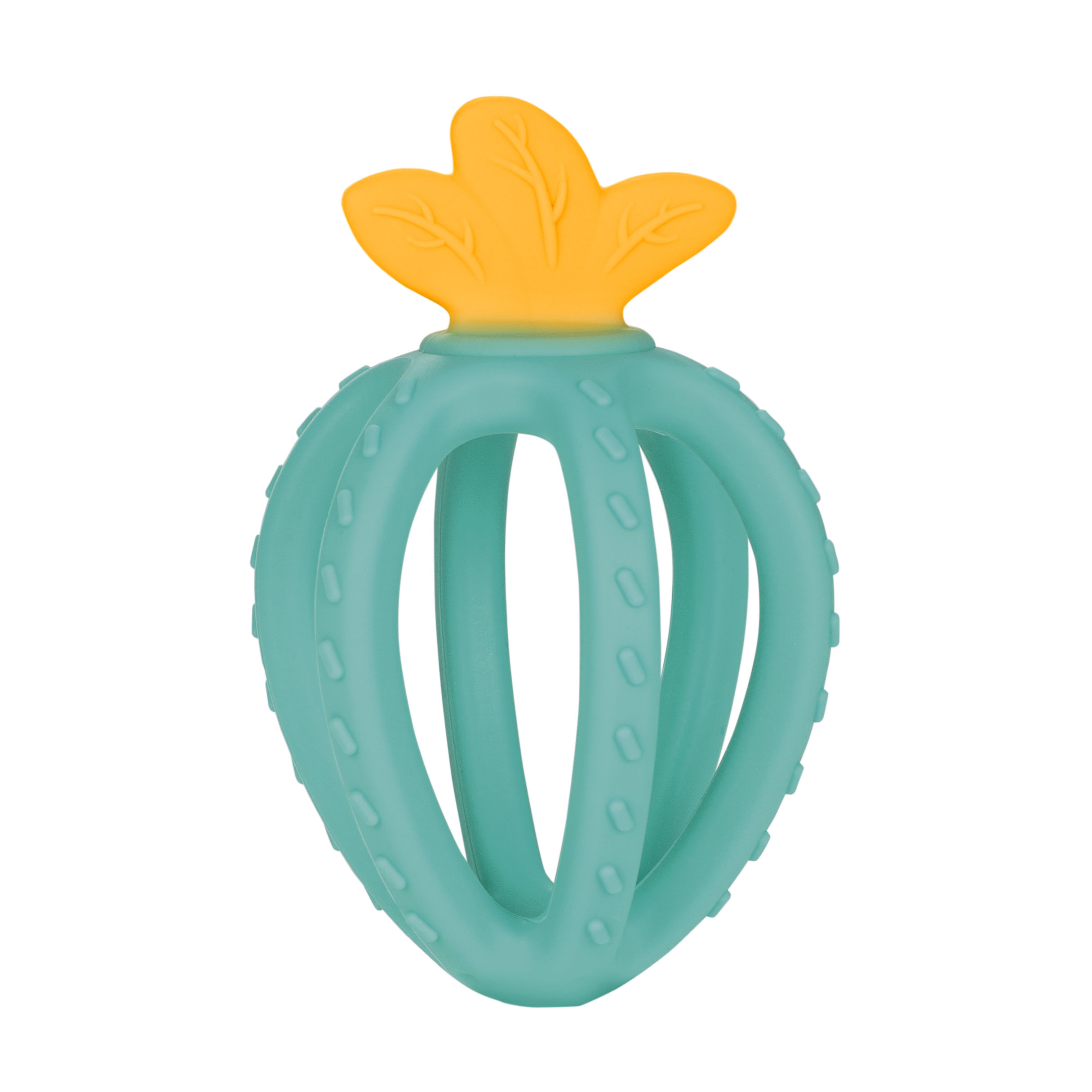 Mansikan muotoinen silikoninen purulelu on suunniteltu sopimaan pienellä kädellä kiinni pidettäväksi!