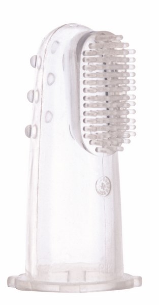 Ensimmäiset hampaat on helppo ja hellävarainen pestä silikonisella sormihammasharjalla. Kätevä apu myös kutisevien ienten hierontaan!