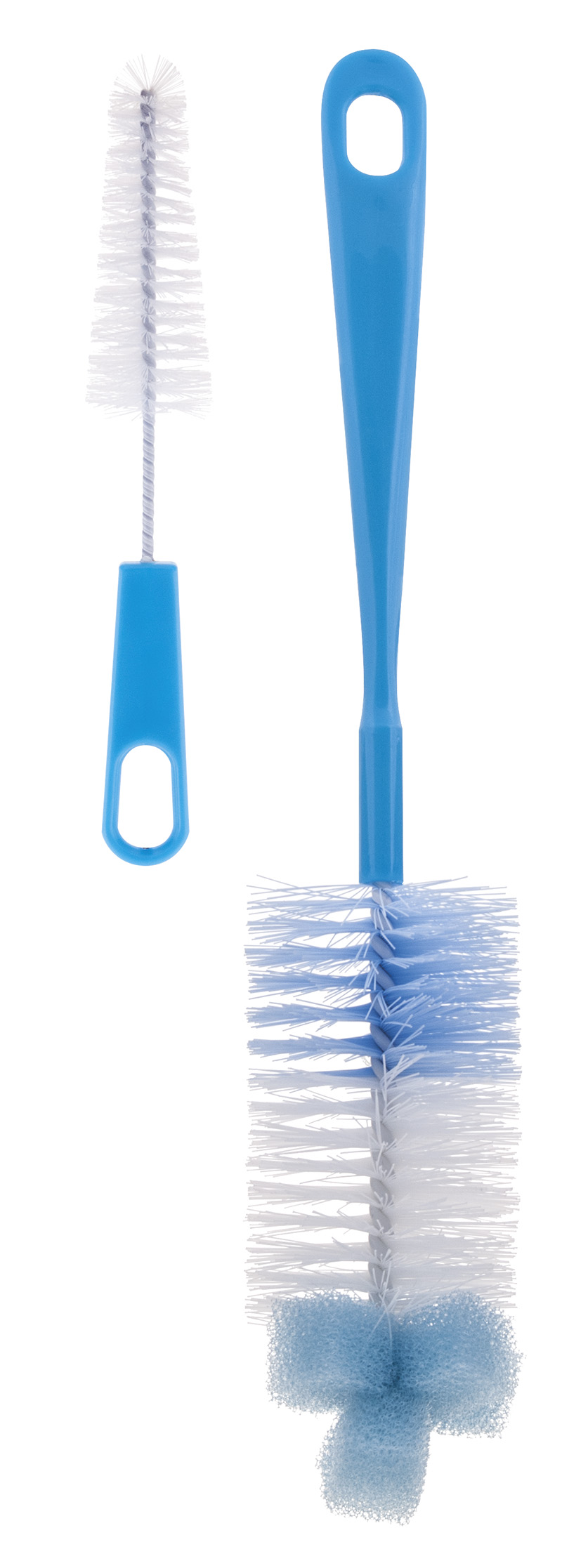 Pulloharjalla peset tuttipullot turvallisesti ja naarmuttamatta. Pulloharjan päässä on pieni pesusieni. Pakkauksessa mukana myös pieni harja.