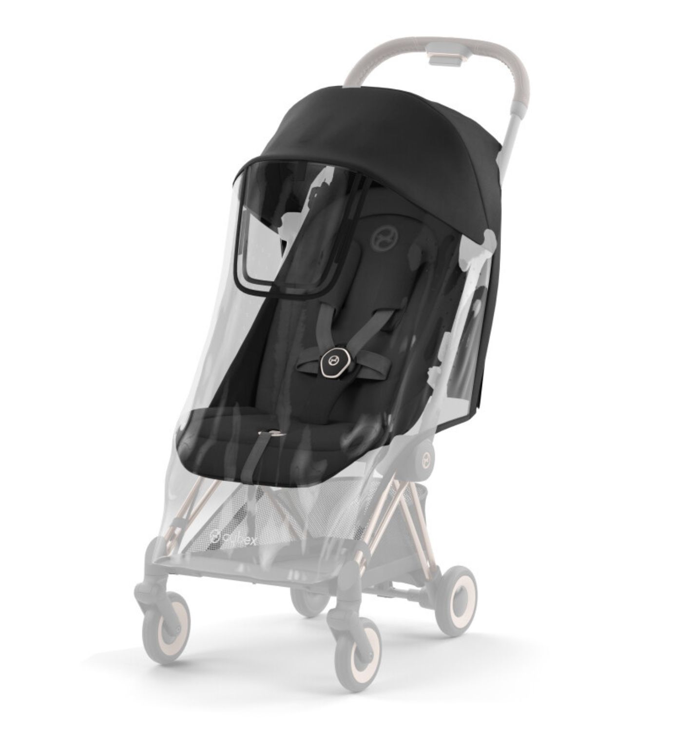 Läpinäkyvä sadesuoja suojaa sateen tai tuulen yllättäessä. Istuu täydellisesti Cybex Coya matkarattaisiin.