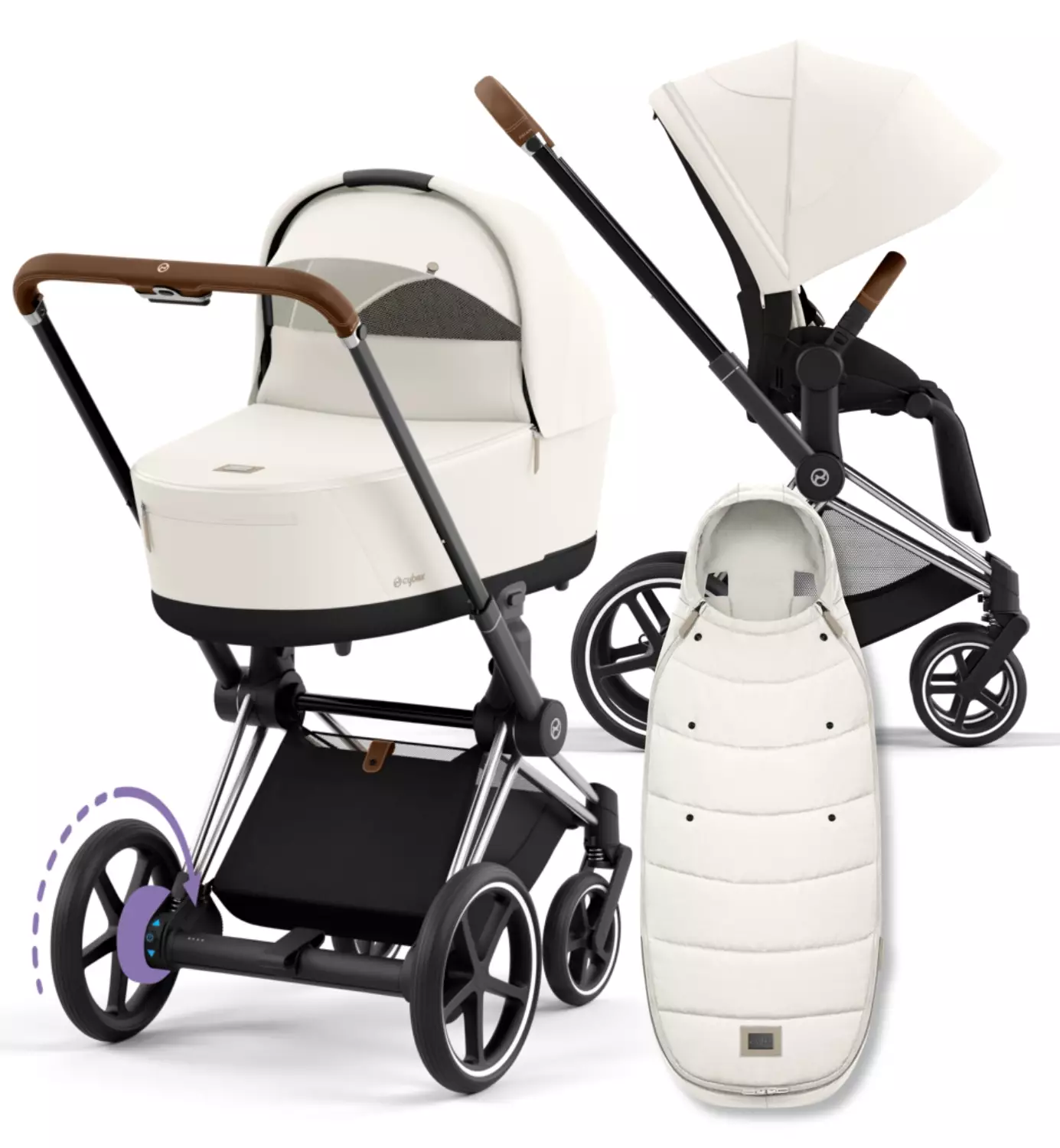 Kääntyvien eturenkaiden tilalle muutamassa sekunnissa vaihdettavat eturenkaat rullaavat mukavasti epätasaisissa maastoissa! Yhteensopiva 2019+ Cybex Priam/ePriam -mallien kanssa...