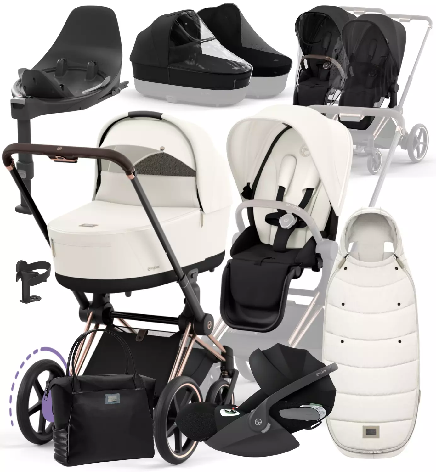 All-in-One Starttipaketissa tulee Cybex ePriam 4 Yhdistelmävaunujen mukana Cybex Cloud T turvakaukalo jalustalla sekä kattava tarvikepaketti, johon kuuluu adapterit, jolla vaunuihin saa kiinni sekä vaunukopan että Cloud T turvakaukalon. Lisäksi settiin tulee sadesuojat sekä vaunukoppaan että ratasistuimeen, hyönteissuojat vaunukoppaan sekä ratasistuimeen, 2-in-1 mukiteline johon saa juoman lisäksi kännykän, hoitolaukku sekä lämpöpussi ratasistuimeen. Suositut Cybex ePriam yhdistelmävaunut sopivat sekä kaupunki- että maastokäyttöön ja pakkautuvat helposti myös auton perään. Makuuasentoon kallistuva Cybex Cloud T i-Size turvakaukalo tarjoaa huipputurvaa sekä kosolti käytännöllisyyttä muun muassa auton oven suuntaan kääntyvän jalustan avulla. Valitse vaihtoehdoista mieleisesi runkoväri!