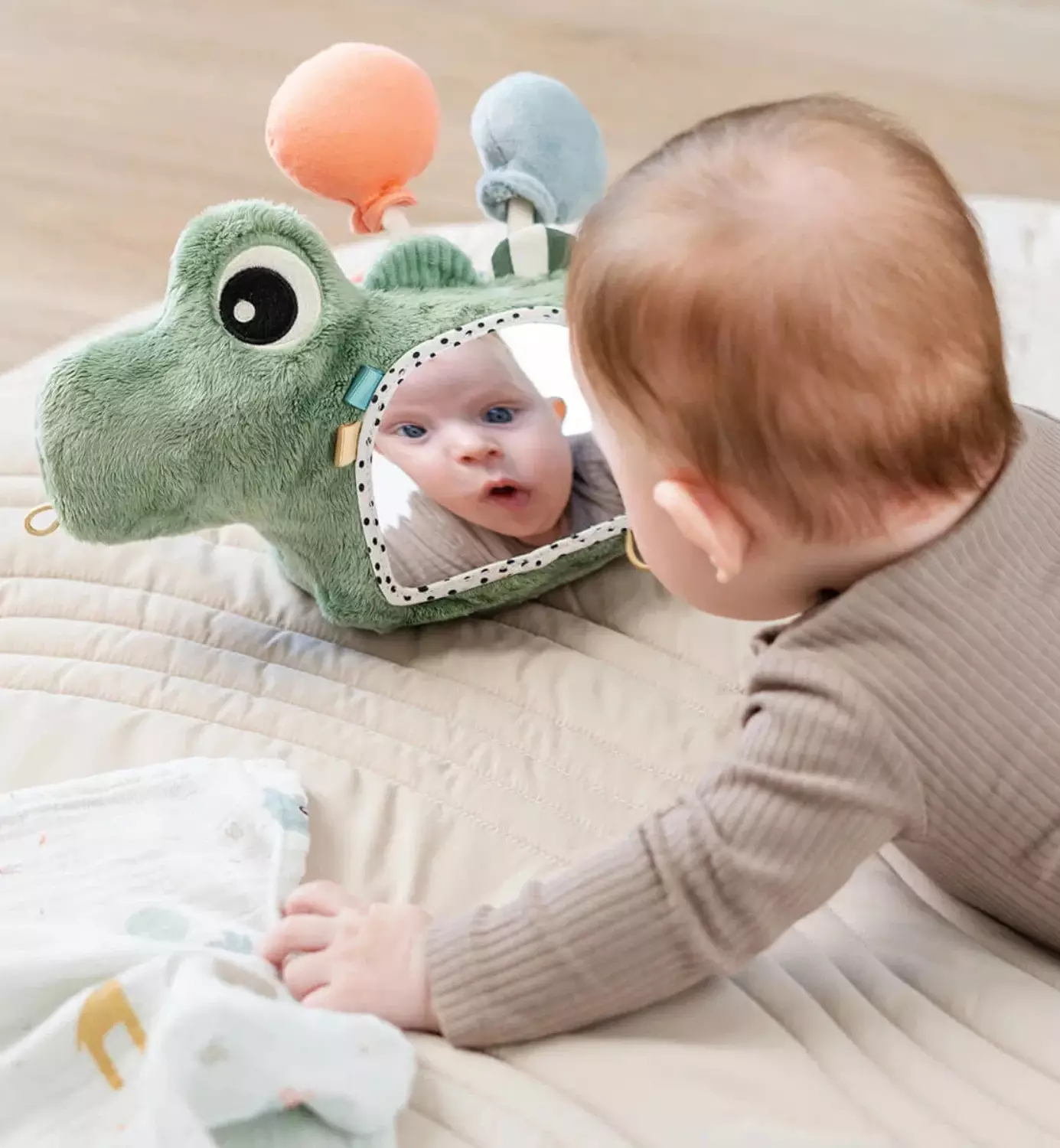 Aktiviteettilelu peilillä tukee vauvan kehitystä erityisesti vatsallaan olon harjoittelua. Peili herättää uteliaisuuden ja rohkaisee lasta nostamaan päätään, kun taas erilaiset materiaalit, äänet ja yksityiskohdat tarjoavat pitkäkestoista aistileikkiä.
