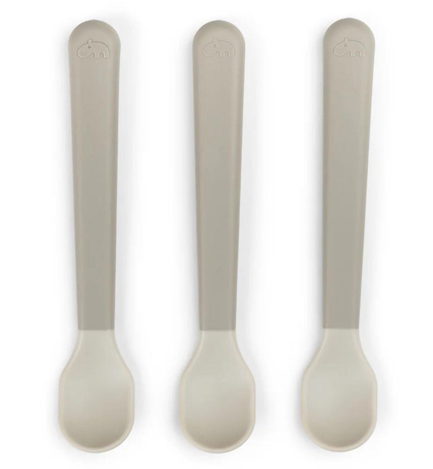 Maistelu alkakoon! Nämä lusikat sopivat sekä syöttäjän, että ruokailijan käteen. Lusikan varsi on päällystetty anti-slip materiaalilla, eikä se lipsu helposti otteesta. Lusikan pää on muotoiltu suun mukaiseksi, ja siihen saa juuri sopivasti ruokaa pienelle herkuttelijalle. Lusikat voi pestä tiskikoneessa!