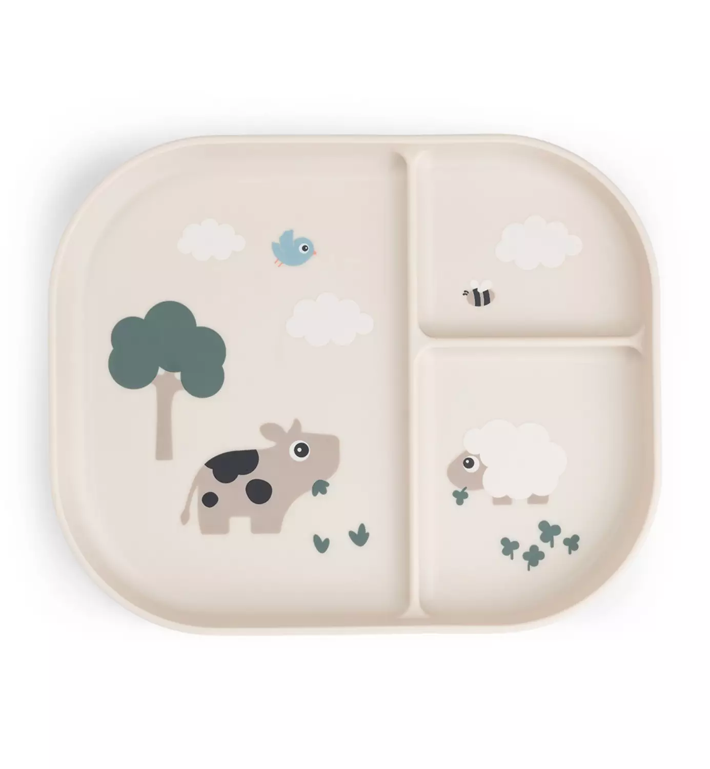 - Liukumaton pohja: Lautasen käytännöllinen antislip-pohja pitää sen tukevasti paikallaan ruokailun aikana.