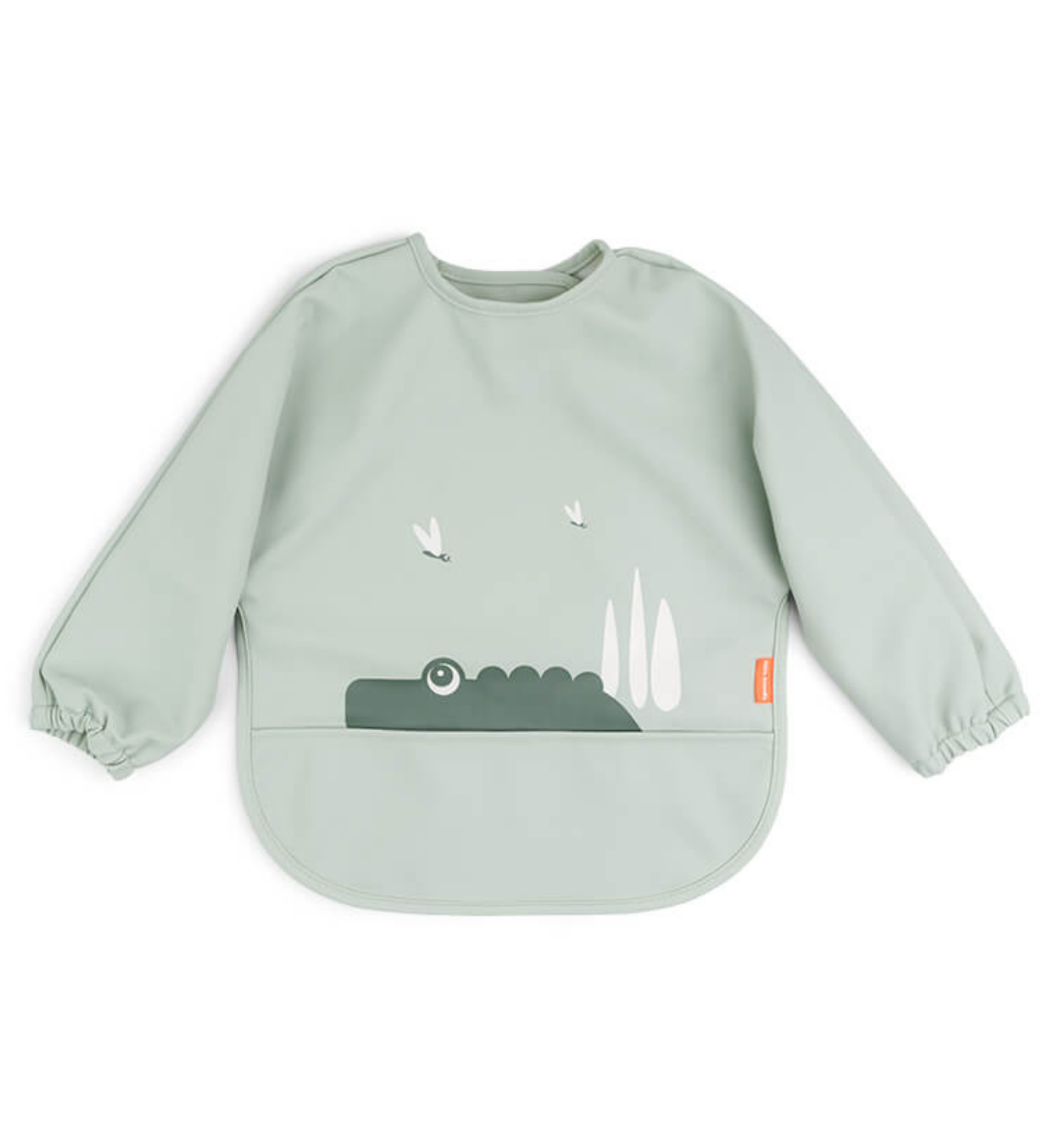 Hihallinen ruokalappu suojaa hyvin niin ruokaillessa kun vaikka askarrellessa. Rokalapussa on tasku, johon ohi menneet ruoat putoavat. Säädettävä tupla kiinnitys takaa hyvän istuvuuden niin vauvalle kun taaperollekin. Ruokalappu on vedenkestävää materiaalia ja hihoissa on kuminauhat. Se on helppo pyyhkäistä puhtaaksi ja kestää myös konepesun.
