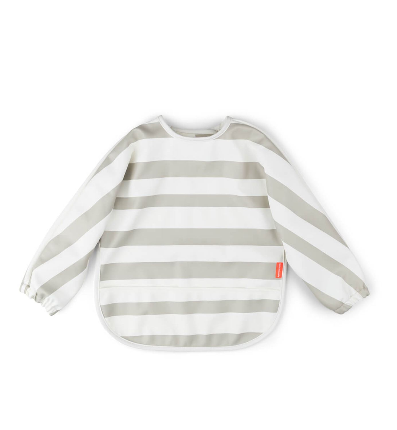 Hihallinen ruokalappu suojaa hyvin niin ruokaillessa kun vaikka askarrellessa. Rokalapussa on tasku, johon ohi menneet ruoat putoavat. Säädettävä tupla kiinnitys takaa hyvän istuvuuden niin vauvalle kun taaperollekin. Ruokalappu on vedenkestävää materiaalia ja hihoissa on kuminauhat. Se on helppo pyyhkäistä puhtaaksi ja kestää myös konepesun.
