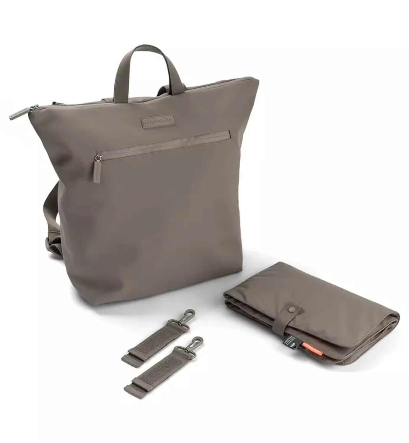 Tässä hoitorepussa yhdistyy käytännöllisyys, kestävyys ja tyylikkyys. Reppuun on käytetty 38 kierrätettävää PET muovipulloa. Kätevyyttä lisää kunnolla avautuva repun suu, seitsemän sisätaskua ja yksi vetoketjullinen ulkotasku. Reppu on erittäin tilava ja taskujen ansiosta tavarat pysyvät hyvässä järjestyksessä. Laukun saat kannettua selässä, jättäen kädet vapaaksi tai voit ripustaa sen vaunuun tai rattaaseen mukana tulevilla kiinnitysremmeillä. Taitettava kosteuden kestävä hoitoalusta kuuluu laukun varustukseen ja kulkee näppärästi aina mukana. Säänkestävyyden takaa vedenkestävä materiaali sekä vetoketjut. Olkahihnat ovat säädettävissä.