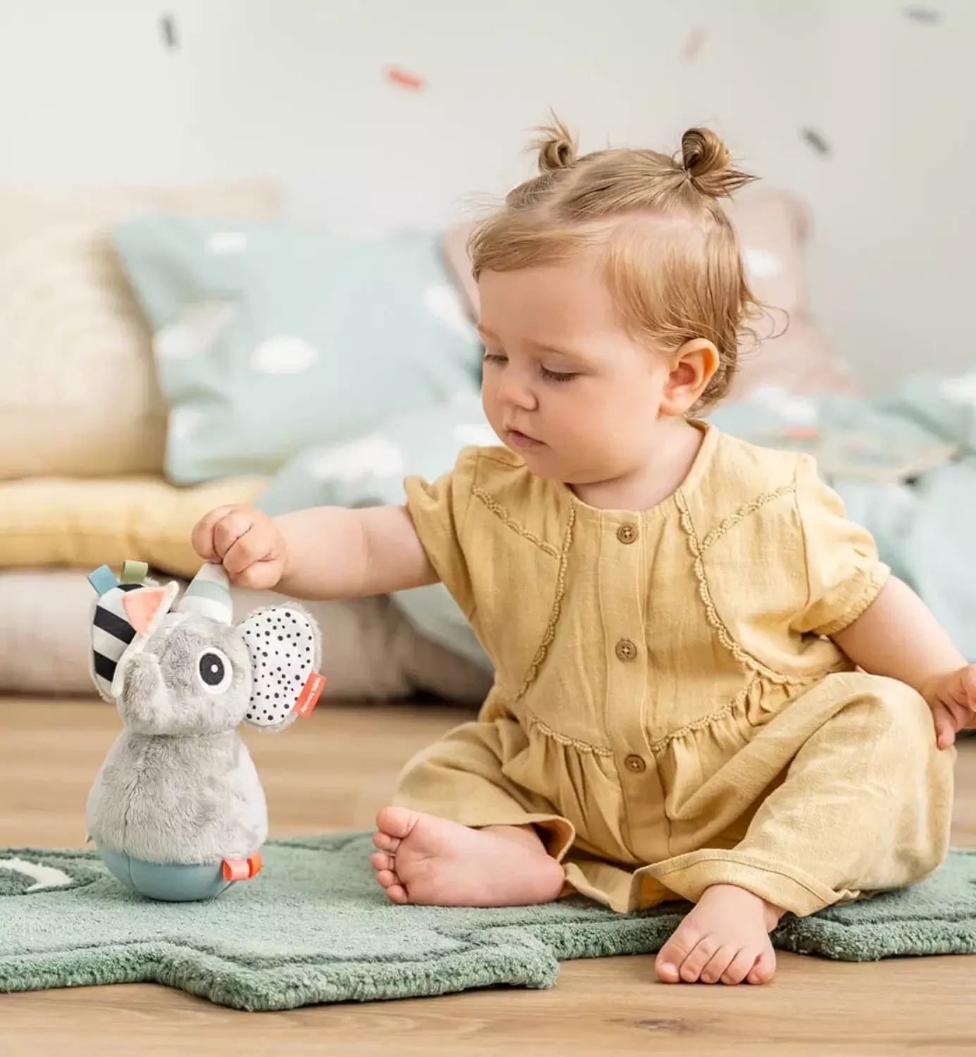 Valmistaudu vauvan iloisiin nauruihin! Done by Deer Elphee keinuva aktiviteettilelu on pehmeä ja aisteja aktivoiva lelu, joka keinuu hauskasti ja nousee aina takaisin pystyyn. Lempeä kulkusen ääni vastaa liikkeeseen, herättää uteliaisuuden ja innostaa vauvaa liikkumaan ja tutkimaan.