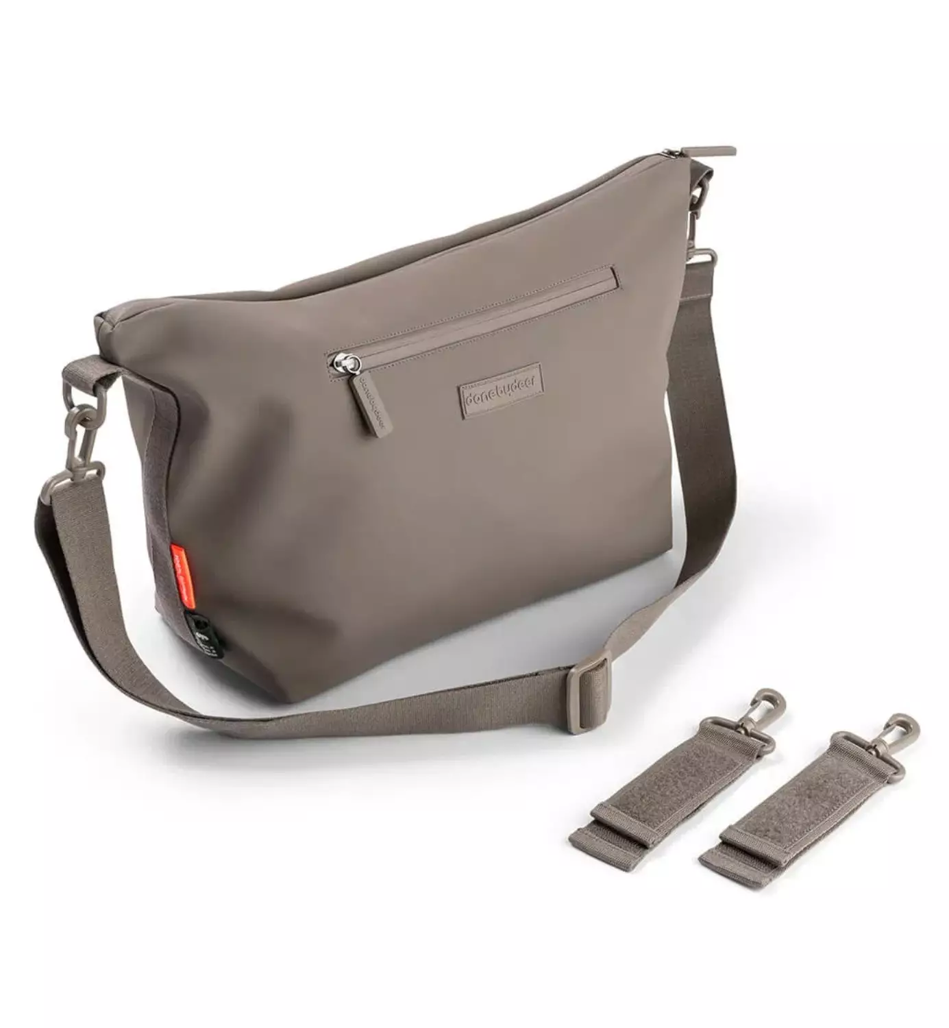 Mukana tulevilla vaunukoukuilla saat laukun ripustettua vaunun ja rattaan työntöaisaan. Organizer on universaalia mallia, joten se sopii kaikkiin vaunumalleihin. Voit käyttää hoitolaukkua myös olalla säädettävän kantohihnan avulla.