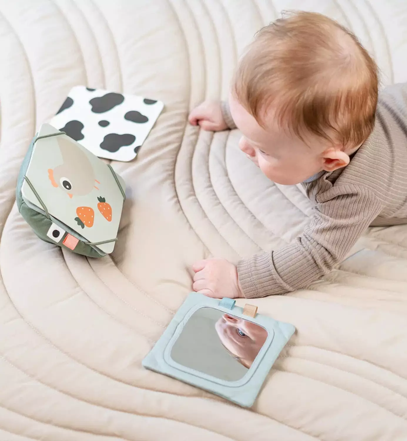 - Interaktiivisuus: peili ja mahdollisuus lisätä omia kuvia tai piirroksia houkuttelevat vauvaa tutkimaan ja oppimaan