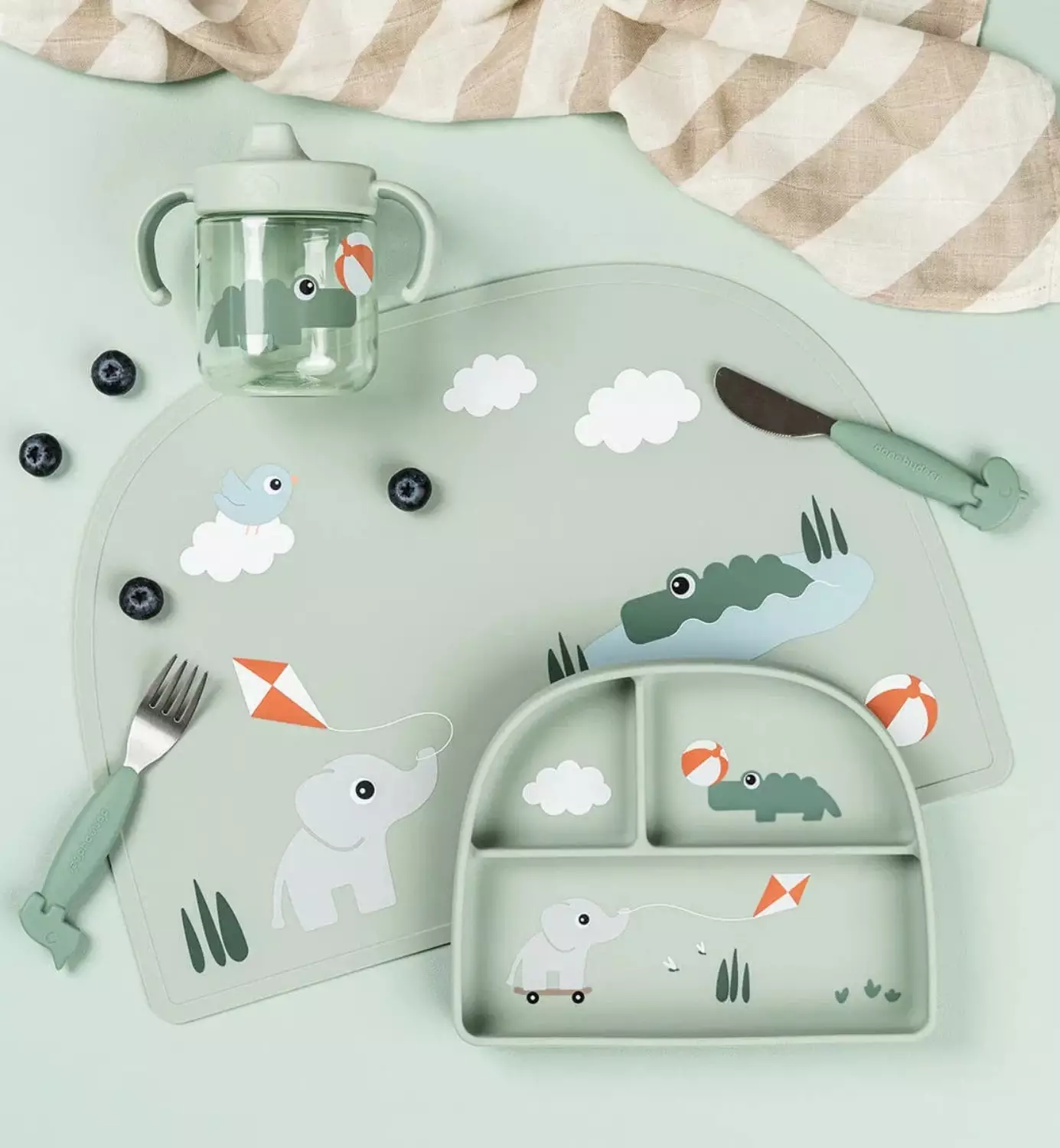 Ruokailualusta on valmistettu 100 % elintarvikekelpoisesta silikonista, joka on BPA‑vapaa ja turvallinen lapsille.