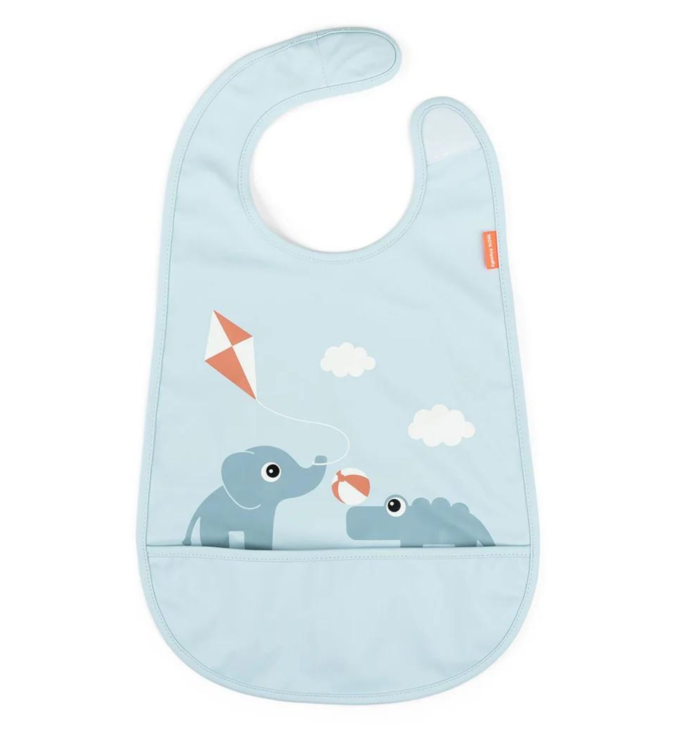Kätevä tarranauhakiinnitys ja miellyttävän pehmeä materiaali. Tasku nappaa kiinni putoavan ruoan! OEKO-TEX® sertifioitu